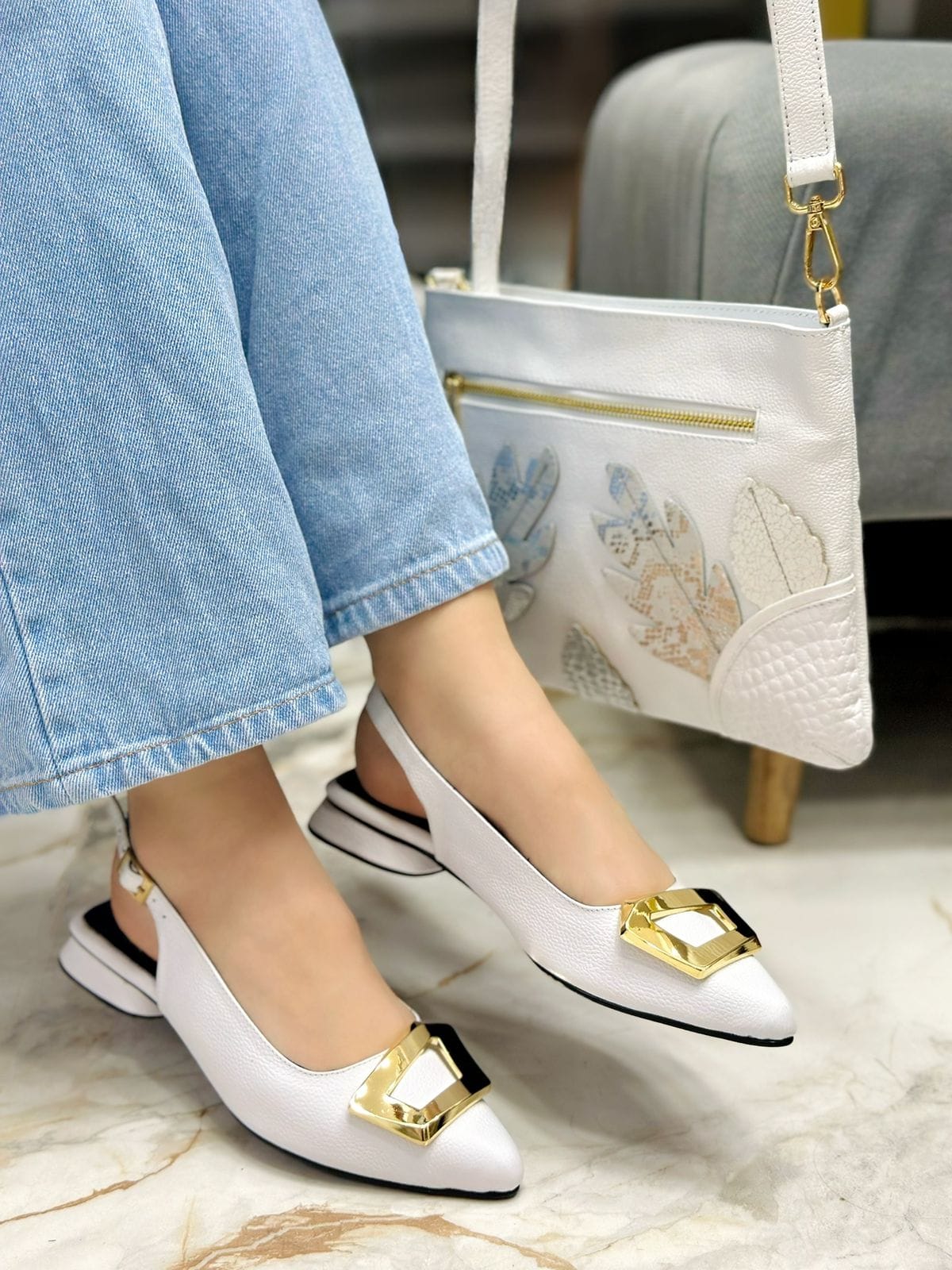 Baletas Estela en cuero Ainara Blanco con hebilla decorativa en la capellada, un diseño elegante y sofisticado que combina comodidad y estilo. Cuentan con un pequeño tacón de 1.5 cm que brinda soporte y realce sutil, ideales para uso diario o para complementar looks modernos y versátiles.