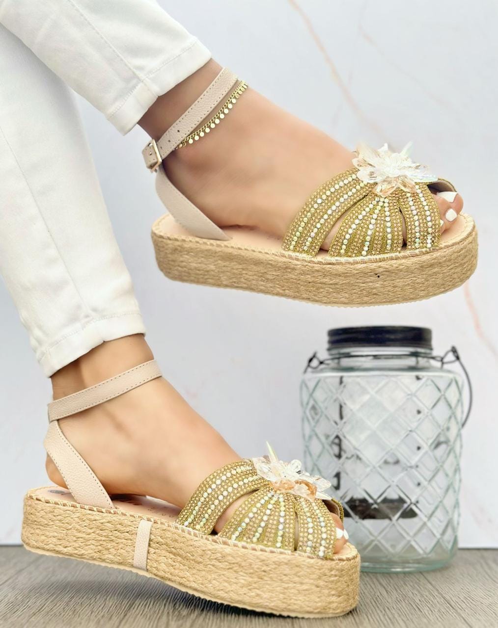 Alpargata Piedras y Flor Beige
