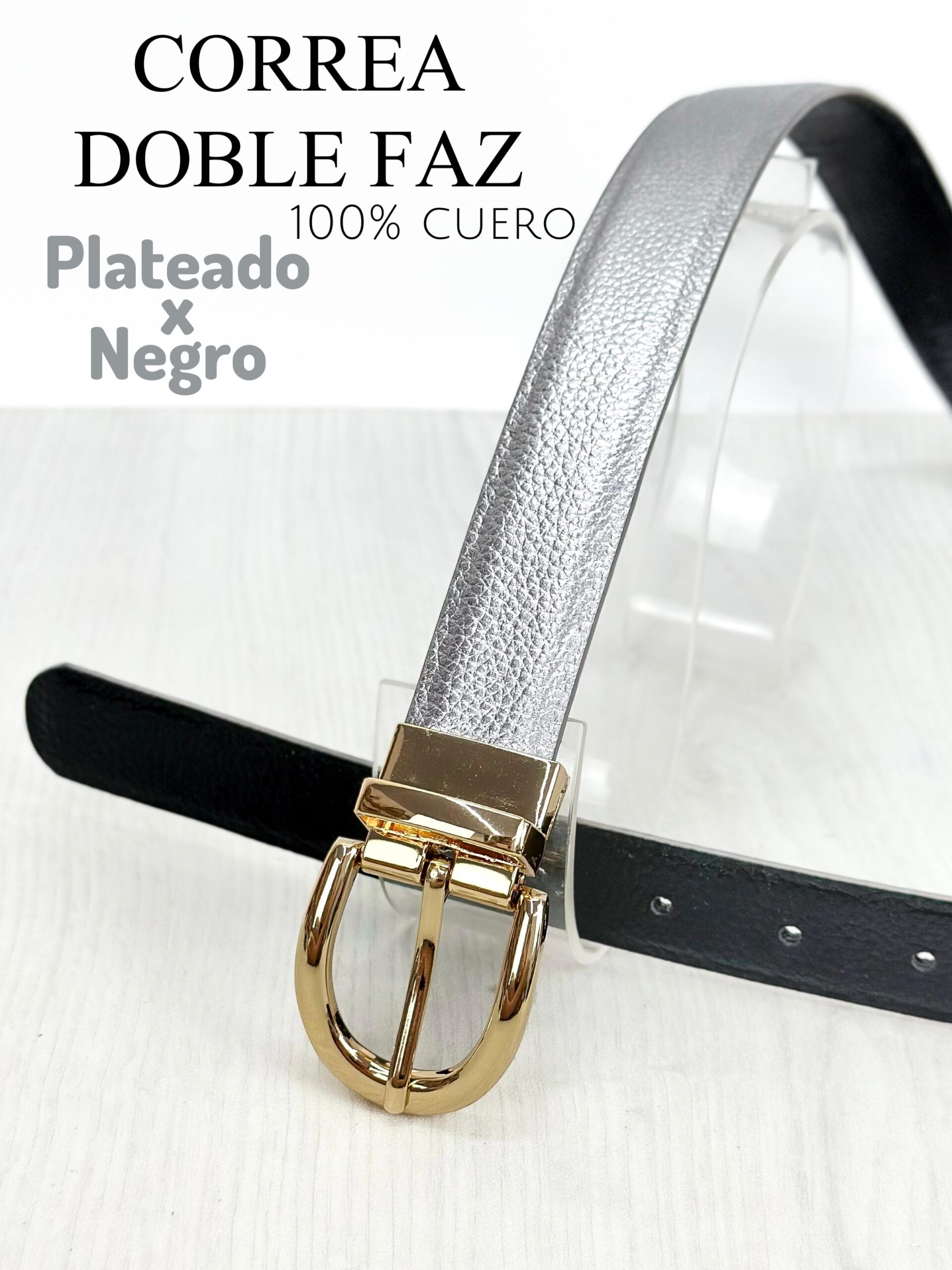 Descubre nuestras exclusivas correas doble faz, diseñadas para ofrecer estilo y funcionalidad en cada detalle. Fabricadas 100% en cuero, estas correas cuentan con una medida de 3 cm y un diseño versátil con dos tonos: Negro por un lado y plomo por el otro. Con solo un movimiento, puedes cambiar al tono que prefieras, haciendo de esta pieza el complemento perfecto para cualquier look. Ideales para quienes buscan elegancia, calidad y practicidad en un solo accesorio.