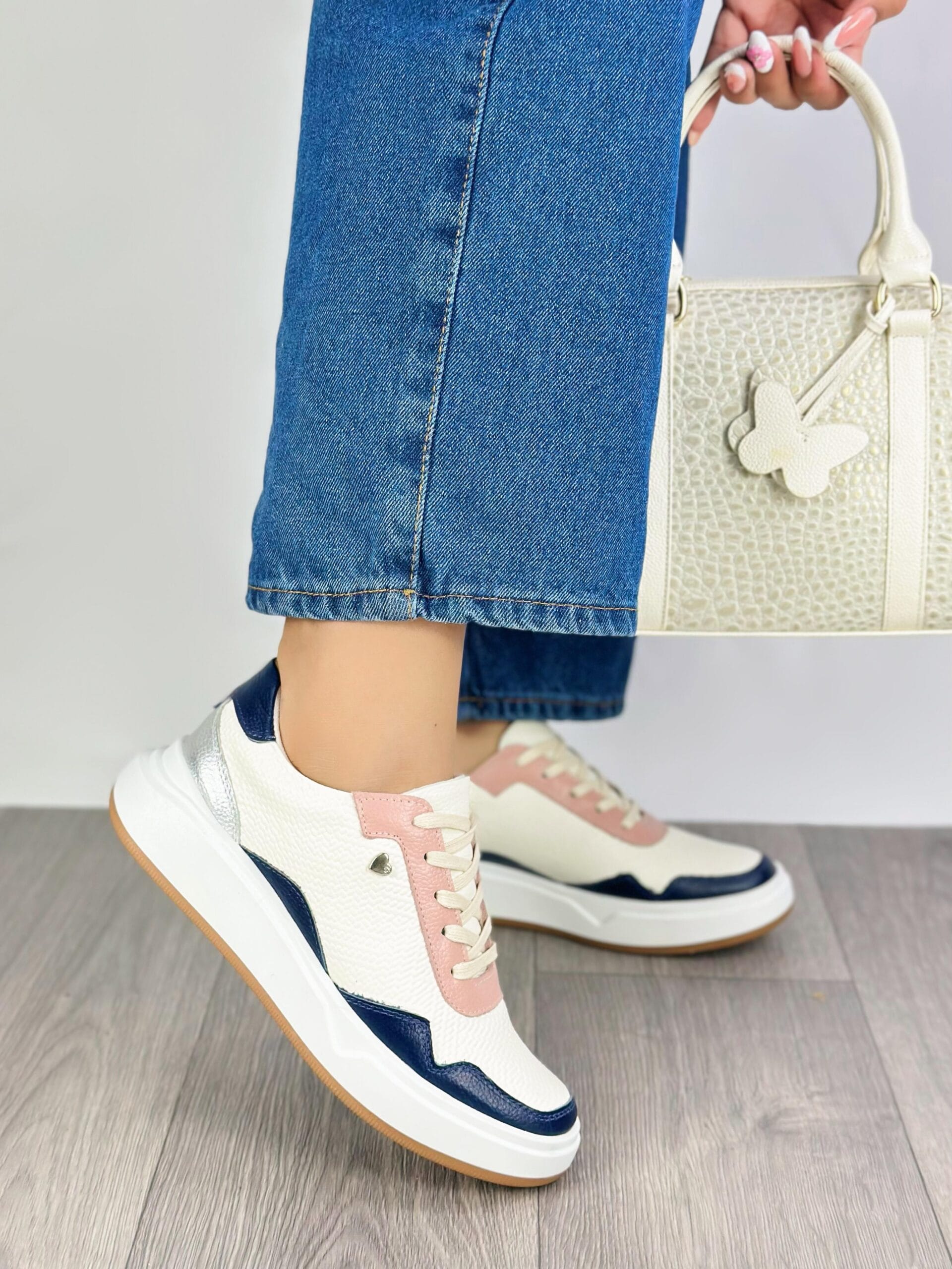 En nuestra exclusiva colección de tenis de cuero Couro,  son meticulosamente diseñados para ofrecerte el máximo confort sin comprometer el estilo. Cuentan con una elegante color Talco en combinación nude con azul . Están confeccionados con cuero de alta calidad y detalles cuidadosamente seleccionados que los hacen destacar en cualquier ocasión.