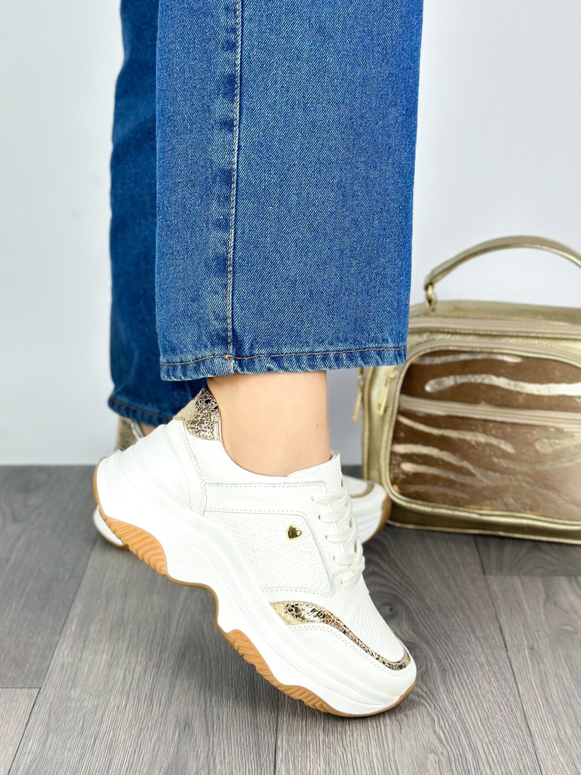 En nuestra exclusiva colección de tenis de cuero Fiore, cada par está cuidadosamente diseñado para ofrecerte el máximo confort sin comprometer el estilo. En esta versión en color Talco, los tenis se destacan por una elegante folia dorada, que añade un toque moderno y sofisticado, ideal para quienes aprecian los detalles sutiles y refinados.