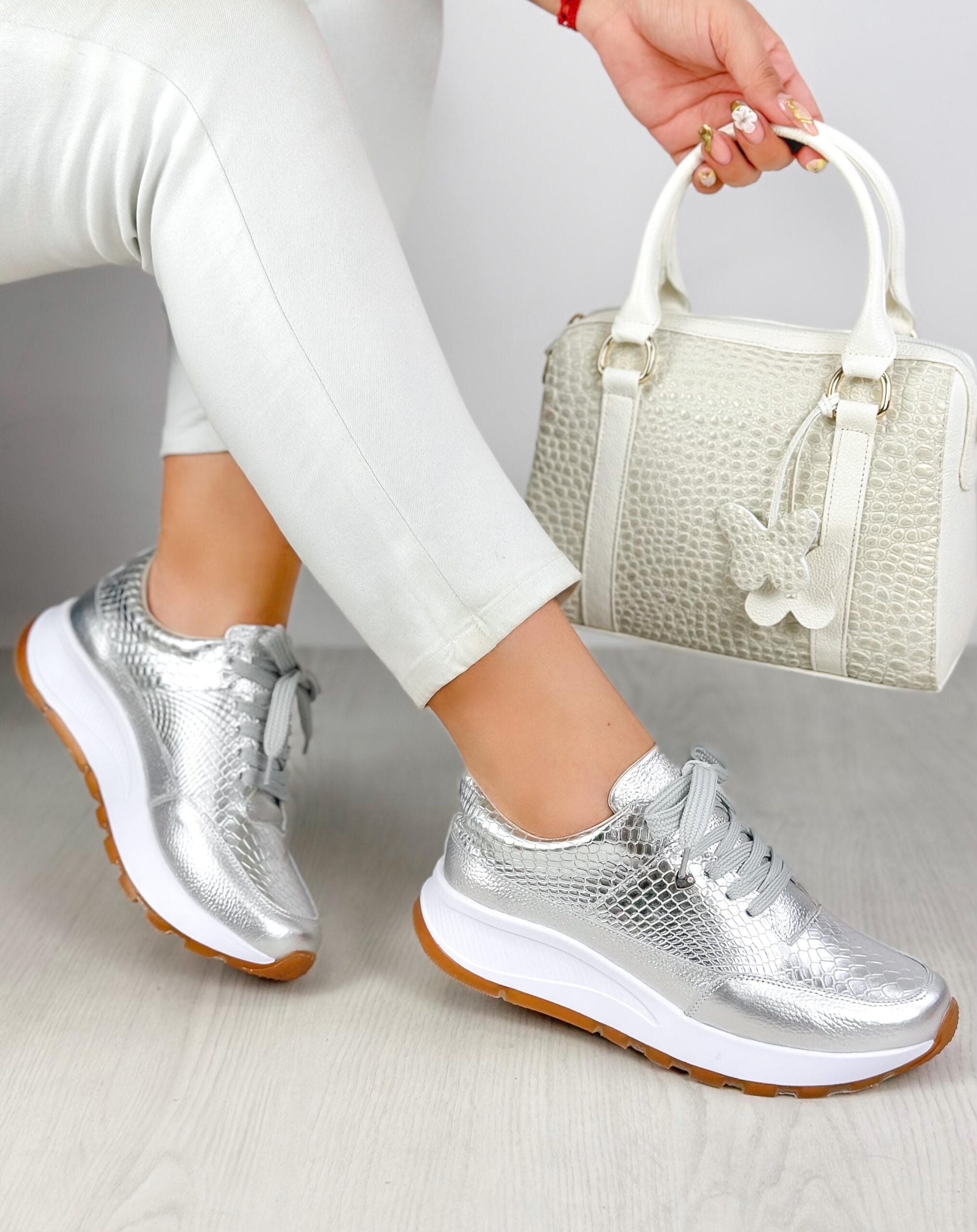 Los tenis Golden Plateado de nuestra exclusiva colección combinan elegancia y confort en un diseño único. Confeccionados en cuero de alta calidad y forrados en suave badana, ofrecen durabilidad y comodidad excepcionales. Su tono Plateado sofisticado, junto con detalles cuidadosamente seleccionados, aporta un toque de lujo y distinción, convirtiéndolos en la opción perfecta para cualquier ocasión.