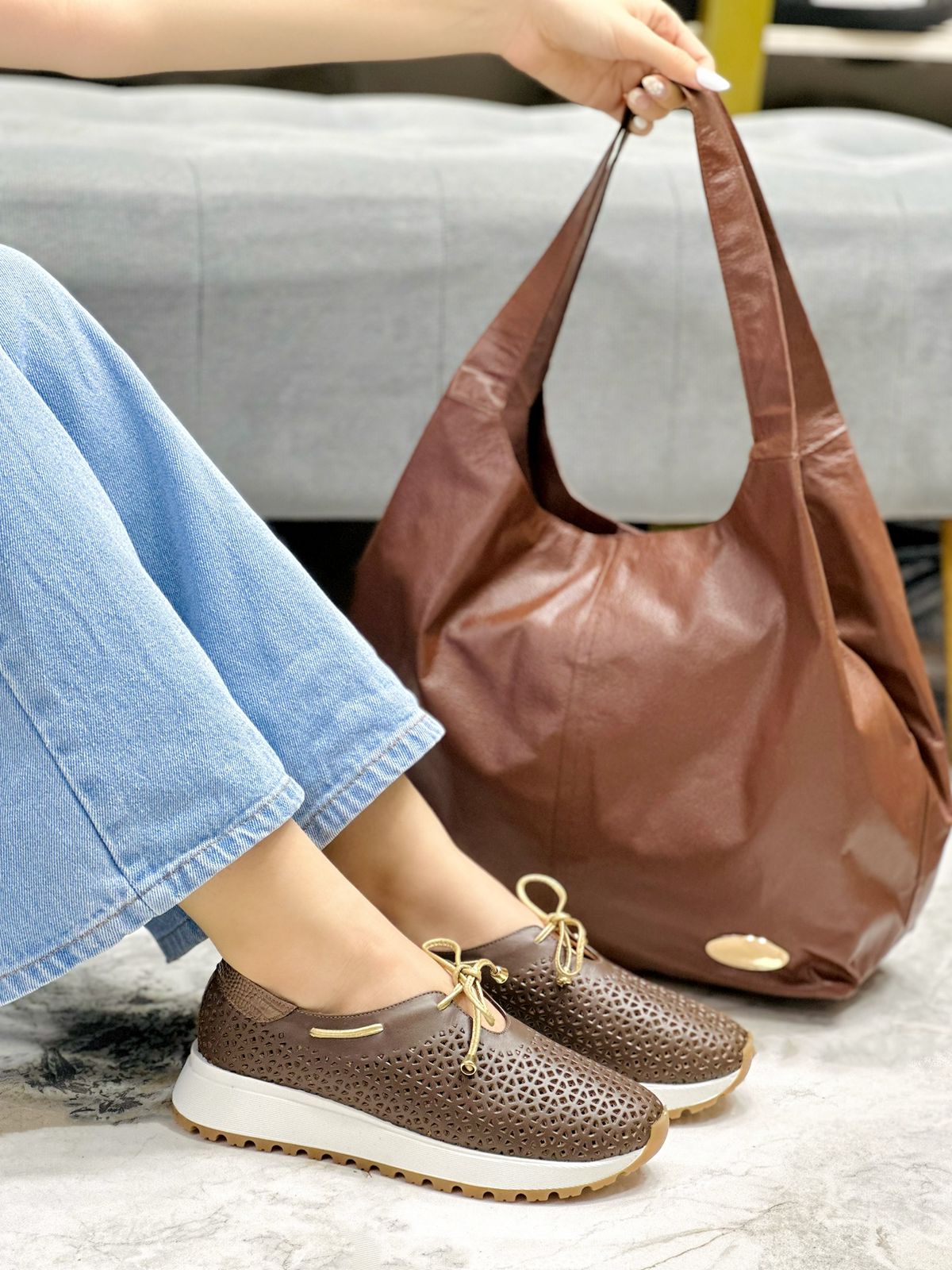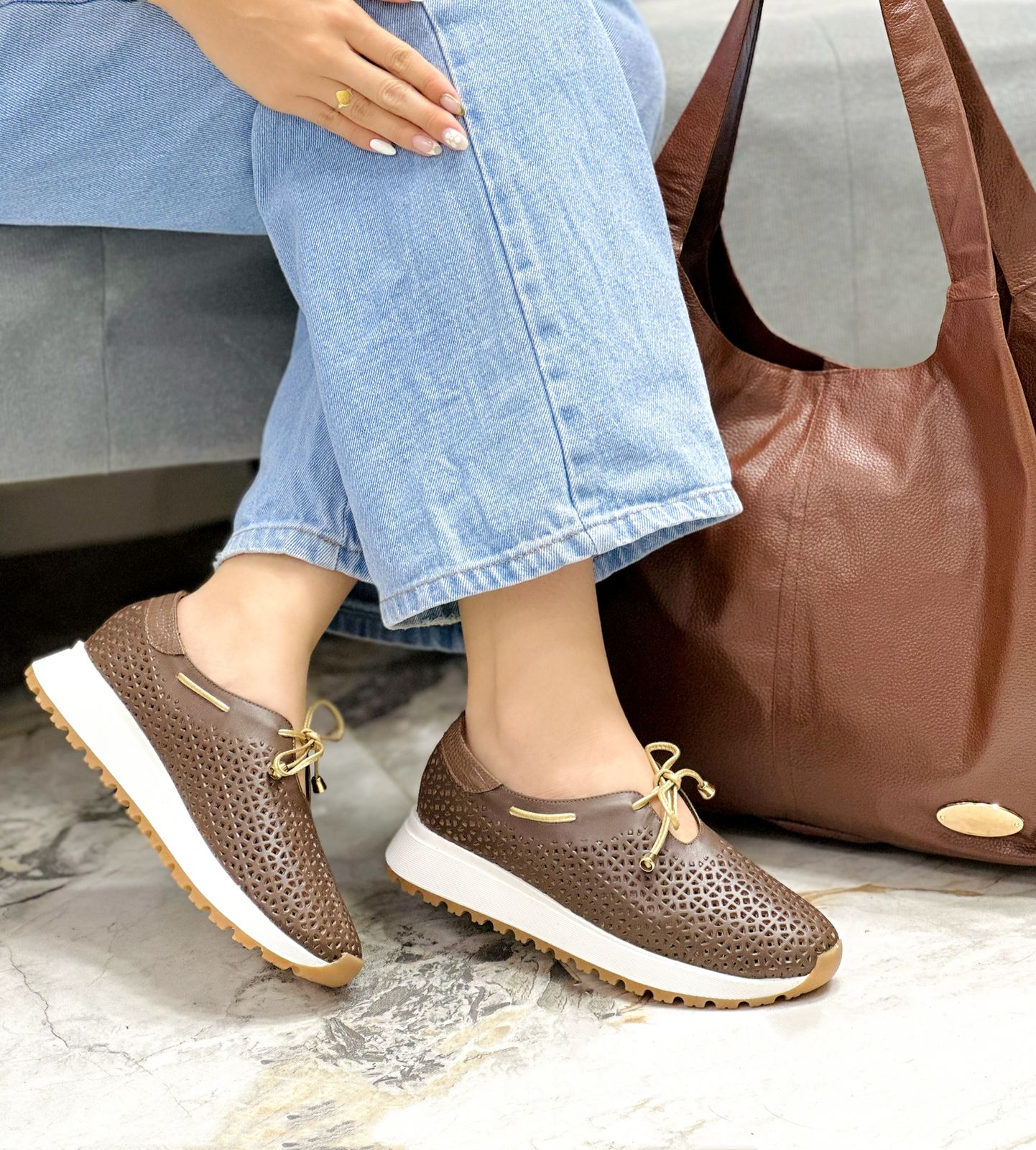 Los tenis Misty en color Chocolate combinan diseño, comodidad y estilo contemporáneo. Elaborados en cuero genuino con delicadas perforaciones que favorecen la ventilación, cuentan con un detalle dorado en la parte trasera que aporta un toque sofisticado. Su diseño sin cordones y con un lazo decorativo los hace de fácil postura, ideales para quienes buscan practicidad y elegancia en un solo calzado.
