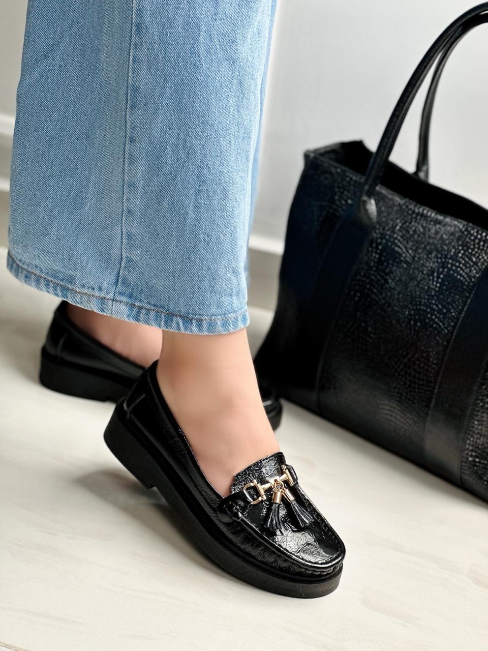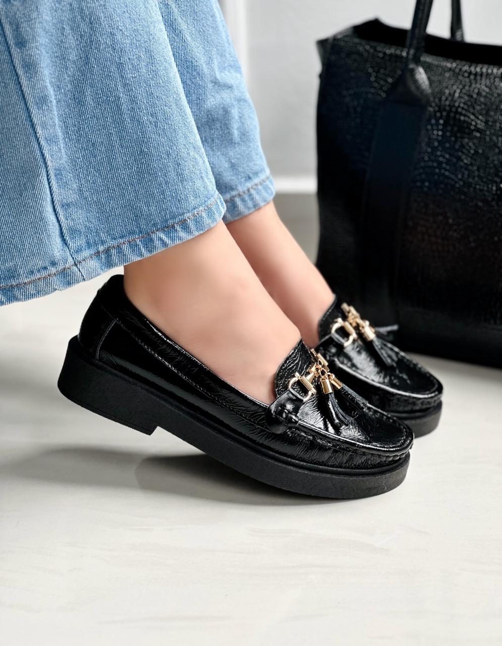 Mocasín Emily Negro Charol Mojado
