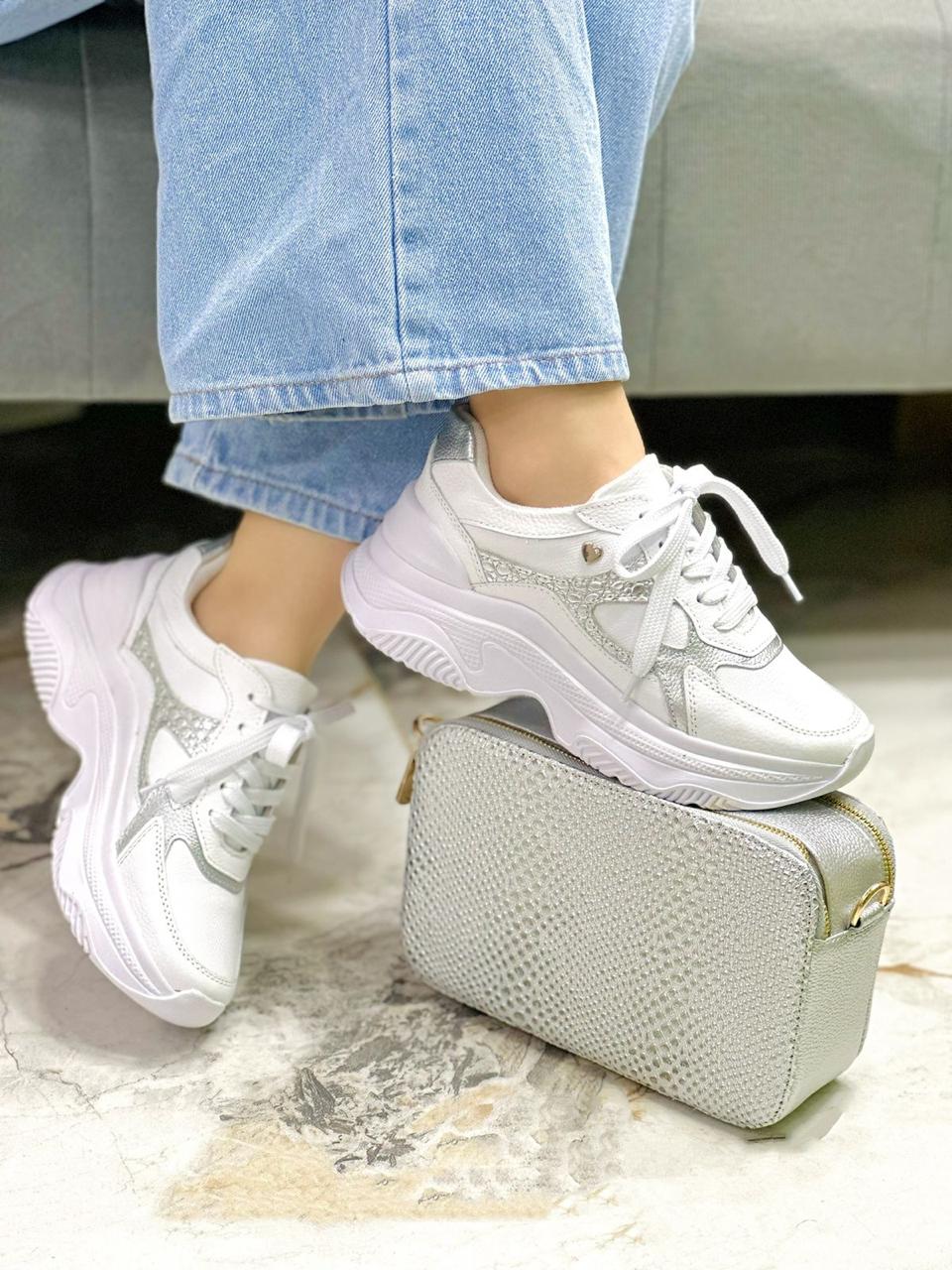 En nuestra exclusiva colección de tenis de cuero Noble, son meticulosamente diseñados para ofrecerte el máximo confort sin comprometer el estilo. Cuentan con una elegante color Blanco con piezas en Plata . Están confeccionados con cuero de alta calidad y detalles cuidadosamente seleccionados que los hacen destacar en cualquier ocasión.