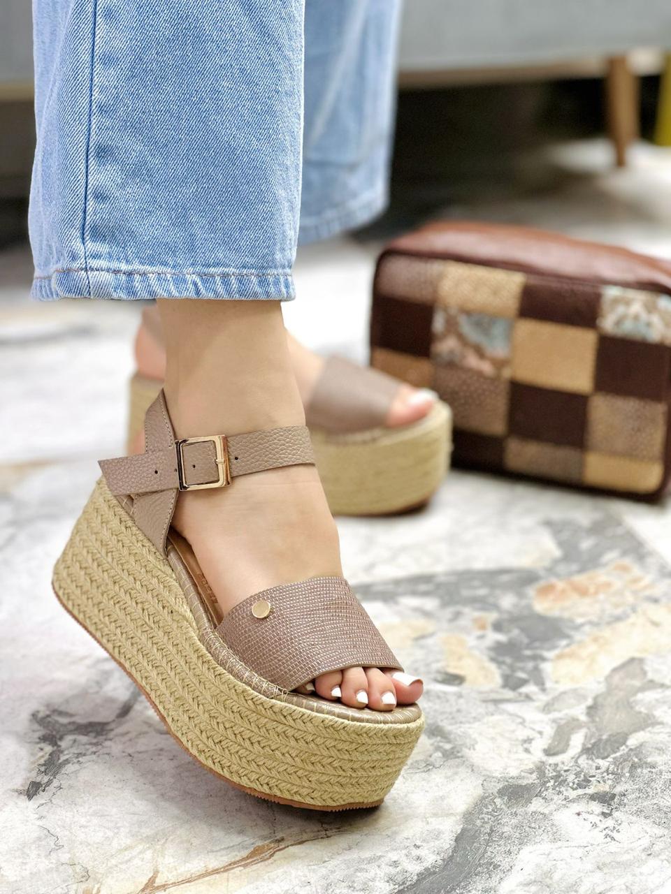 Plataformas Nicky de color Taupe fabricadas con materiales de excelente calidad que garantizan durabilidad y comodidad. Cuentan con una altura trasera de 6 cm y delantera de 4 cm, logrando el equilibrio perfecto entre estilo y confort. Su diseño con correas ajustables se adapta al pie brindando seguridad en cada paso, mientras que la suela tipo yute añade un toque fresco y versátil. Ideales para combinar con outfits casuales o elegantes, estas plataformas en cuero son el complemento perfecto para destacar tu look con un brillo sofisticado y moderno.