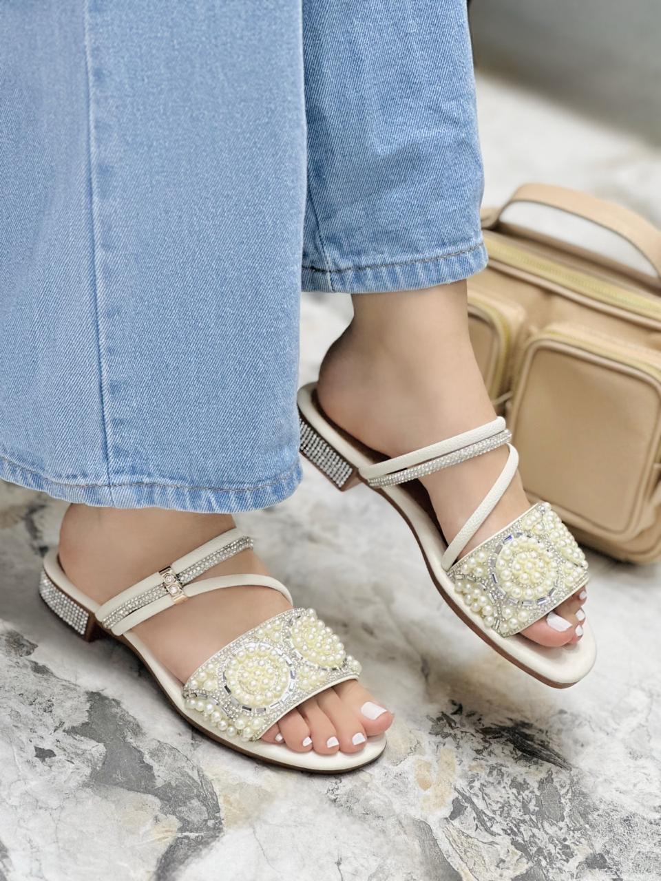 Las sandalias Denis en color talco están elaboradas en material sintético de alta calidad, con un diseño sofisticado adornado con perlas y pedrería que realzan su estilo único. Su formato sin correa para amarrar permite una postura más rápida y práctica, brindando comodidad en cada paso. Versátiles y elegantes, son ideales para combinar con jeans, vestidos o conjuntos más formales, convirtiéndose en el complemento perfecto para cualquier ocasión.
