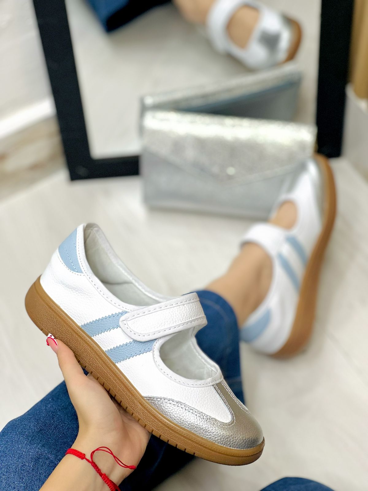 En nuestra exclusiva colección de tenis de cuero los Steffy, son meticulosamente diseñados para ofrecerte el máximo confort sin comprometer el estilo. Cuentan con un elegante color Blanco con detalles en celeste y plateado. Están confeccionados con cuero de alta calidad y detalles cuidadosamente seleccionados que los hacen destacar en cualquier ocasión.