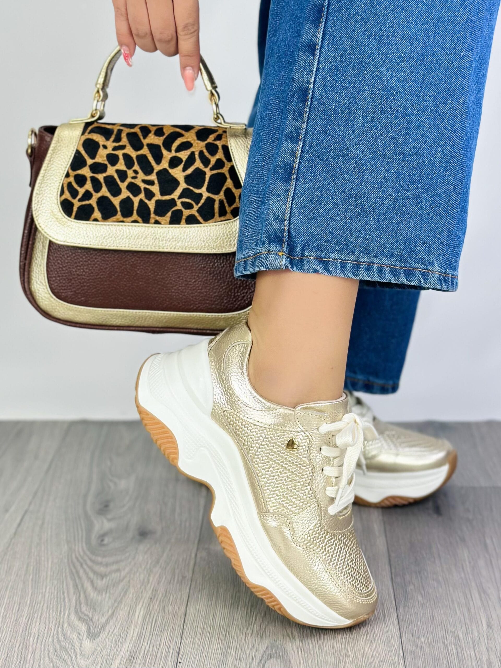 En nuestra exclusiva colección de tenis de cuero Svelte, son meticulosamente diseñados para ofrecerte el máximo confort sin comprometer el estilo. Cuentan con una elegante color Dorado. Están confeccionados con cuero de alta calidad y detalles cuidadosamente seleccionados que los hacen destacar en cualquier ocasión.