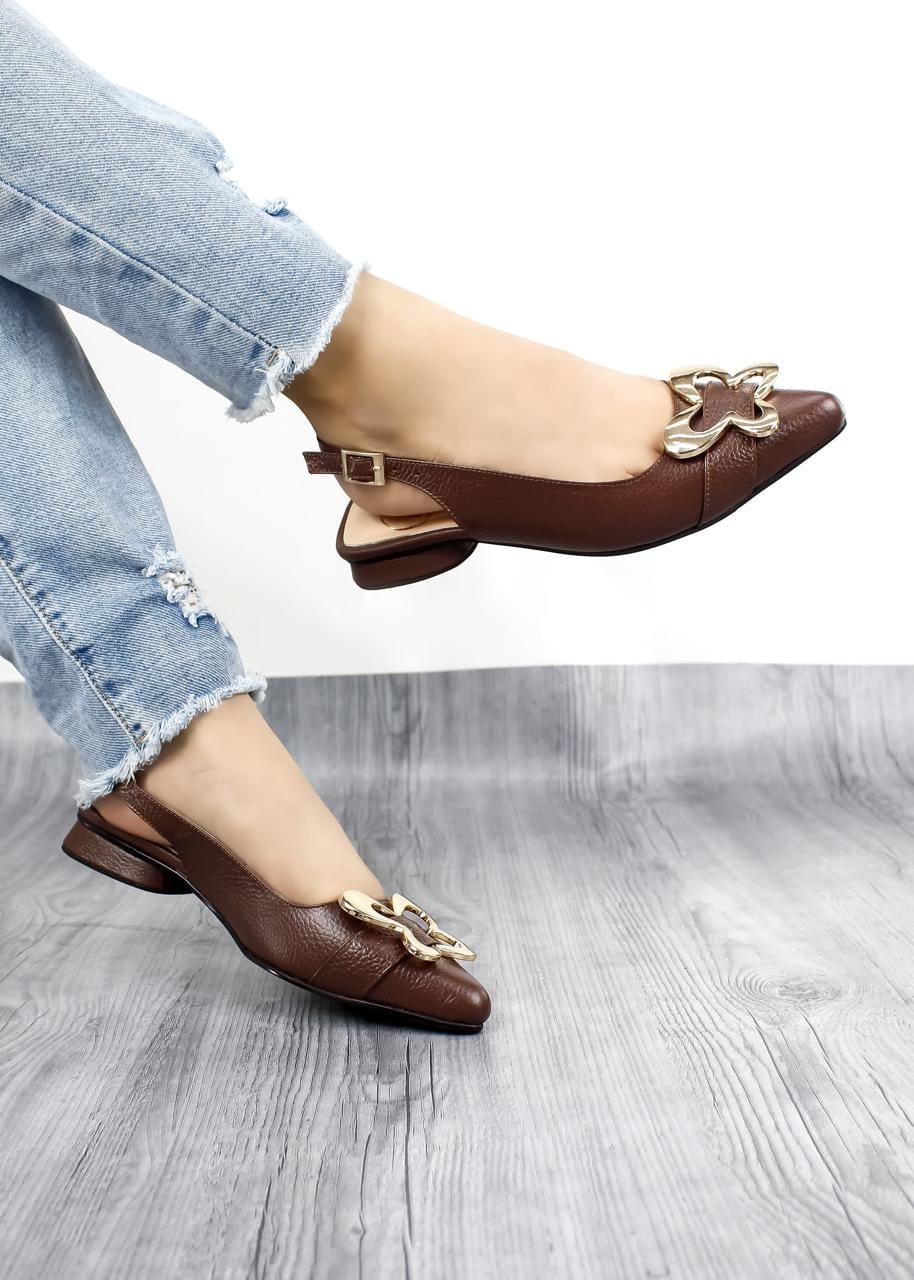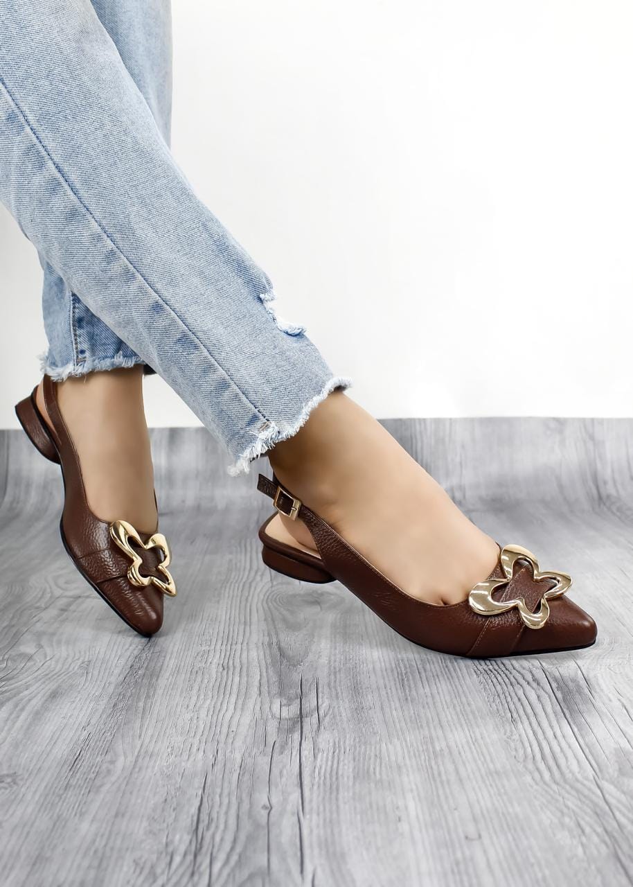 Los tacones Celestial en color Café son la definición perfecta de elegancia y confort. Hechos completamente en cuero de alta calidad, estos tacones cuentan con una altura de 2 cm que proporciona una postura impecable sin sacrificar comodidad además con su hebilla en forma de mariposa. Su diseño único añade un toque de distinción a cualquier atuendo, haciéndolos ideales para cualquier ocasión. Su estilo refinado y su confort excepcional hacen que resalten tus looks, brindando un gran toque de elegancia y sofisticación en cada paso.