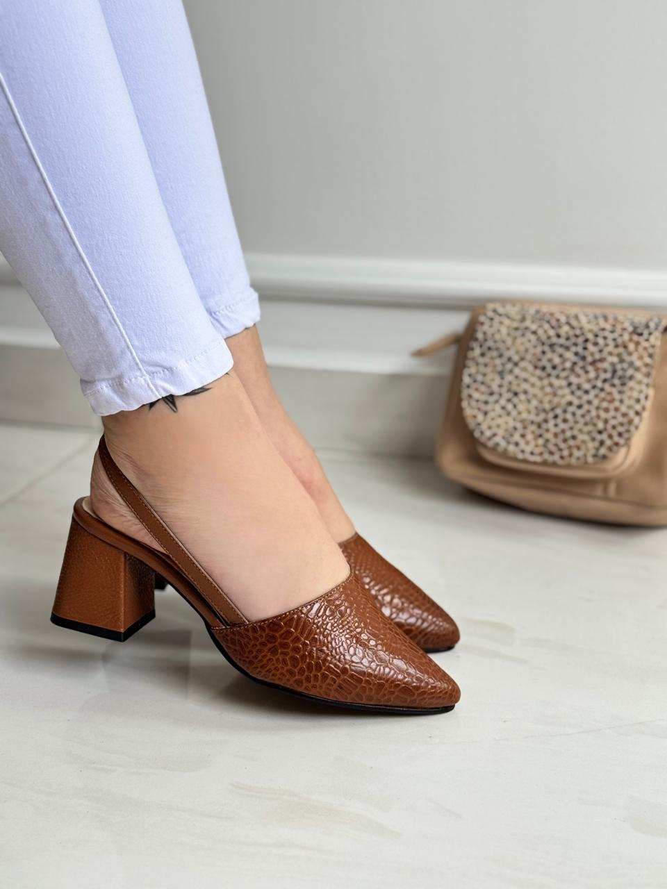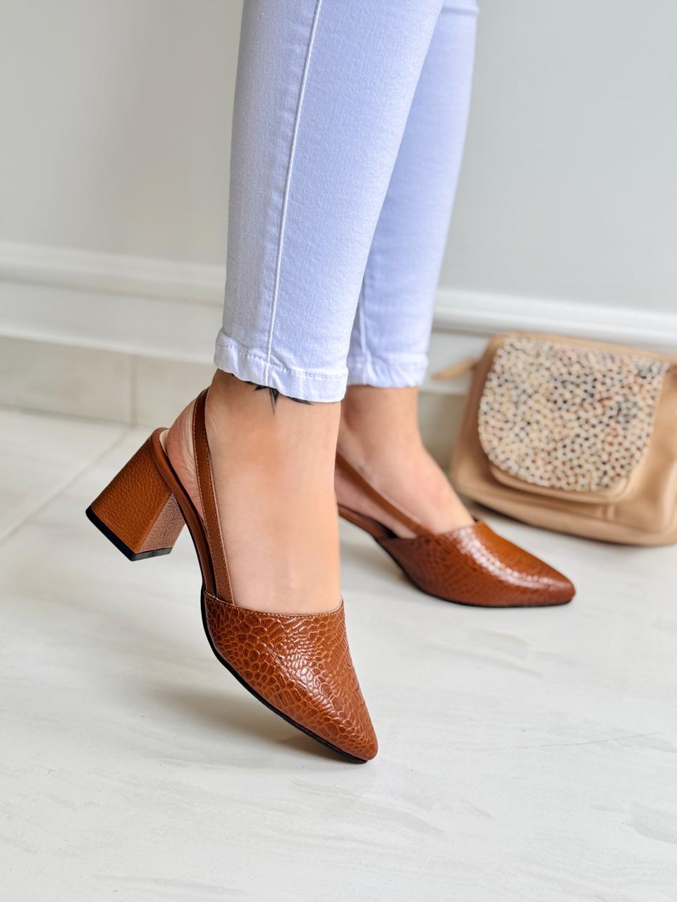 Los tacones Esme en color miel combinan elegancia y confort en cada paso. Su diseño en punta con capellada cerrada aporta un estilo sofisticado, mientras que el tacón de 6 cm ofrece la altura ideal para usarlos durante todo el día. Cuentan con una delicada correa que se ajusta perfectamente al pie, brindando mayor sujeción y seguridad. El cuero grabado no solo garantiza durabilidad, sino que añade una textura única que los hace destacar. Un calzado versátil, ideal para elevar cualquier look, desde la oficina hasta un evento especial.