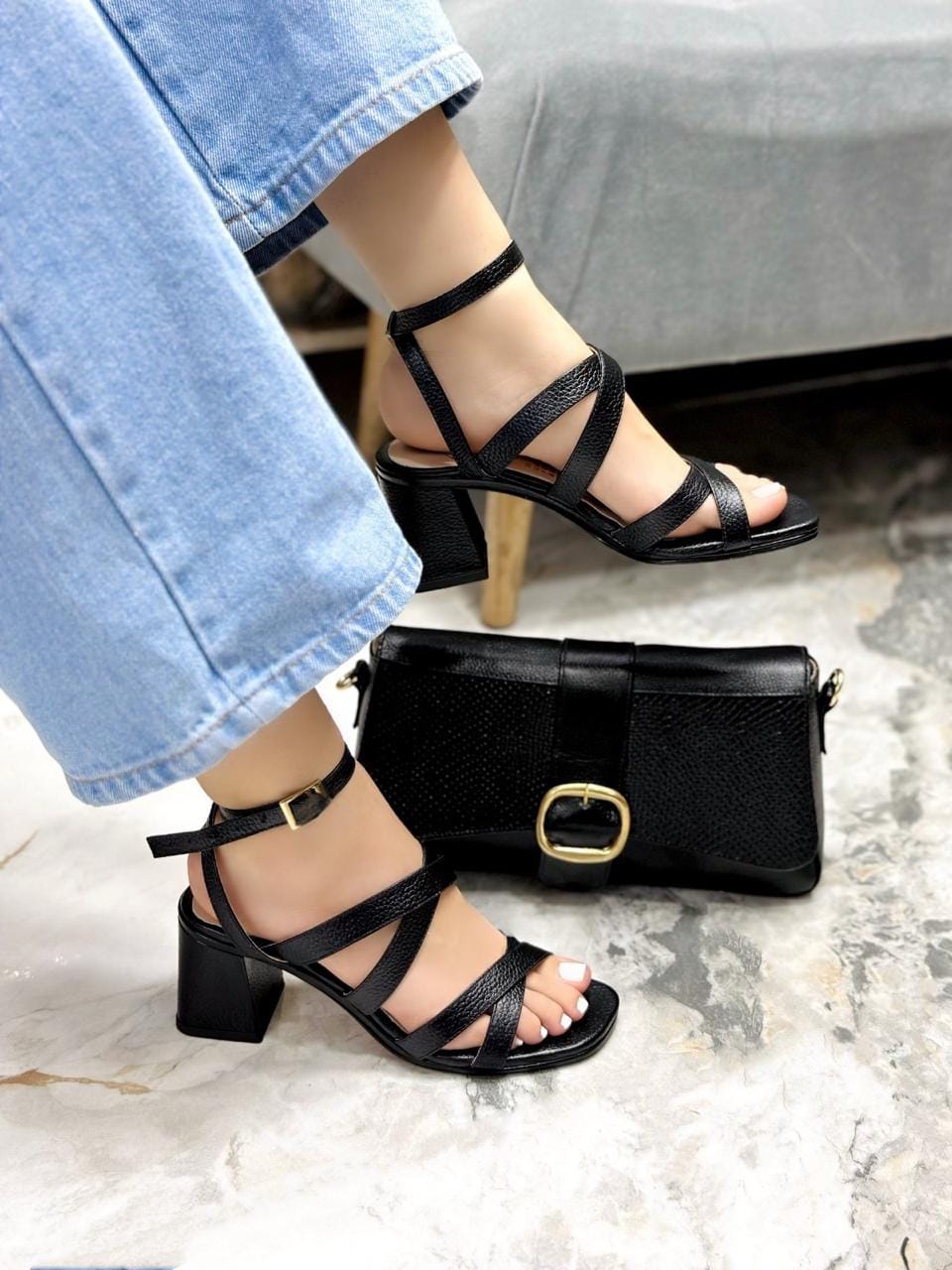 Tacones Sarah en color Negro, elaborados en cuero de alta calidad con un tacón de 6 cm que brinda la altura perfecta sin perder comodidad. Su diseño con tiras cruzadas aporta elegancia y versatilidad, ideales para acompañar cualquier look con estilo y sofisticación.