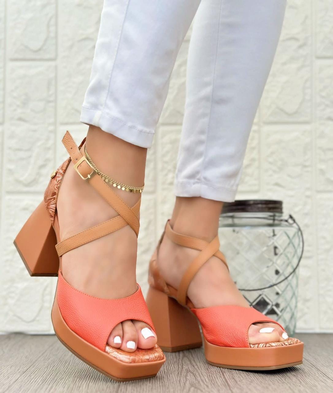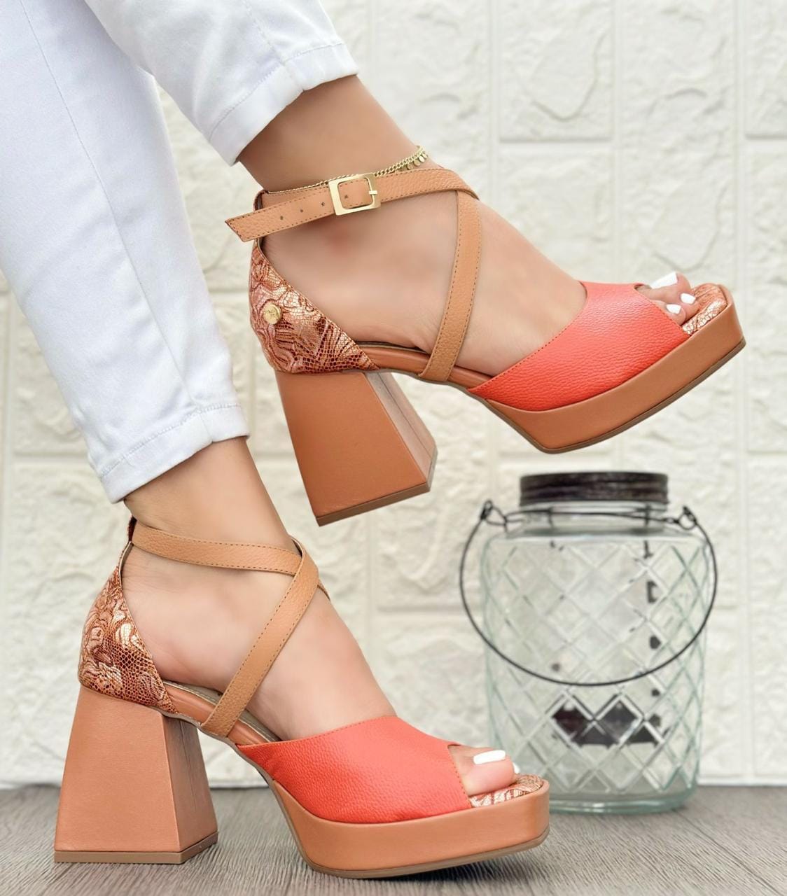 Tacones En Cuero Naranja