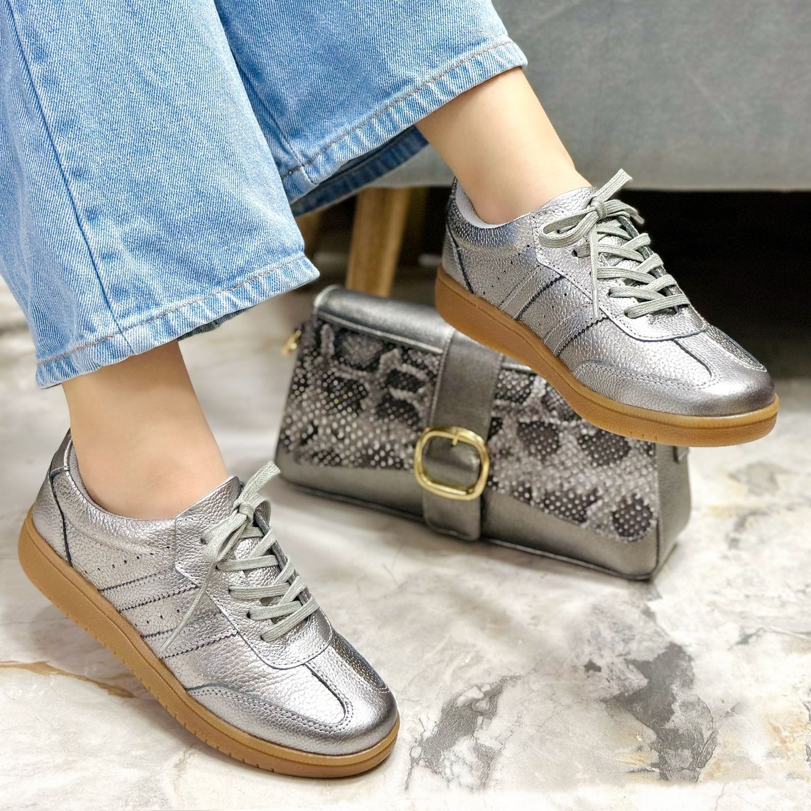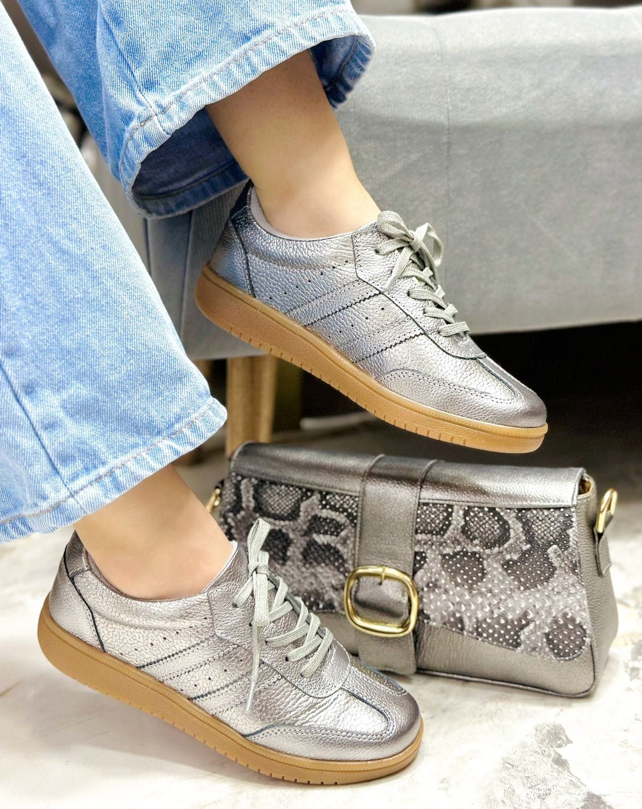 Los tenis Amanda en cuero color caño fusil combinan elegancia y comodidad. Su suela bajita en tono caramelo aporta un toque moderno y versátil, ideal para cualquier ocasión. Fabricados en cuero de alta calidad, son perfectos para acompañarte con estilo todos los días.