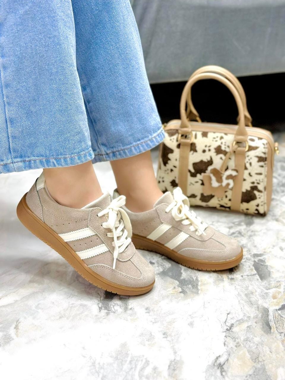 Luce un estilo fresco y relajado con nuestros tenis Urban Beige, confeccionados en cuero gamuzado de alta calidad. Su tono neutro y suave se adapta a cualquier outfit, mientras que las franjas laterales en blanco le dan ese aire urbano y deportivo que nunca pasa de moda.