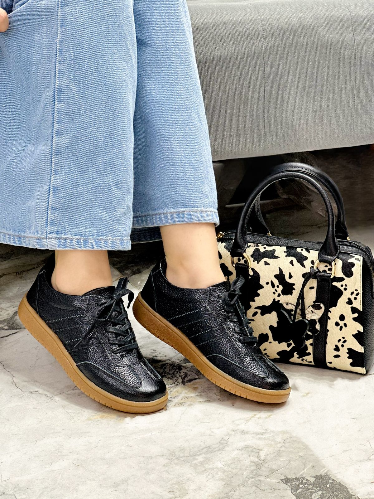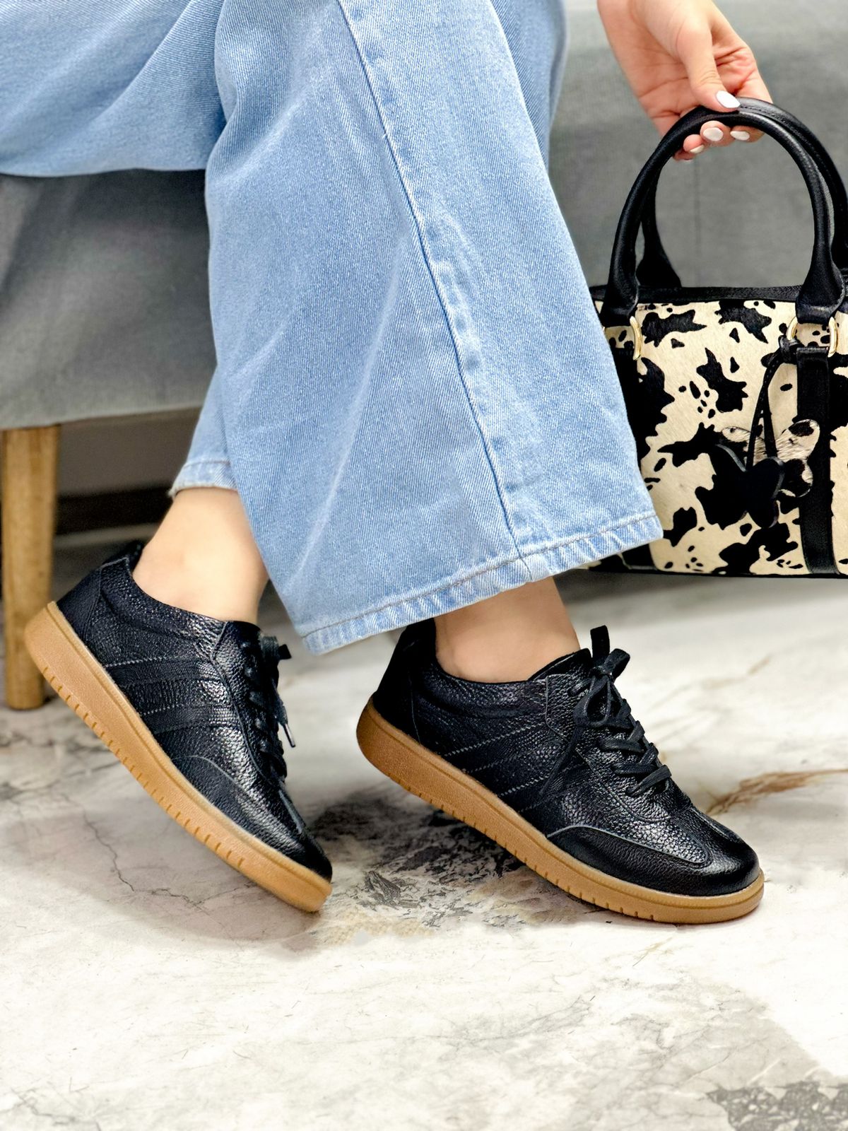 Los tenis Amanda en cuero color Negro combinan elegancia y comodidad. Su suela bajita en tono caramelo aporta un toque moderno y versátil, ideal para cualquier ocasión. Fabricados en cuero de alta calidad, son perfectos para acompañarte con estilo todos los días.