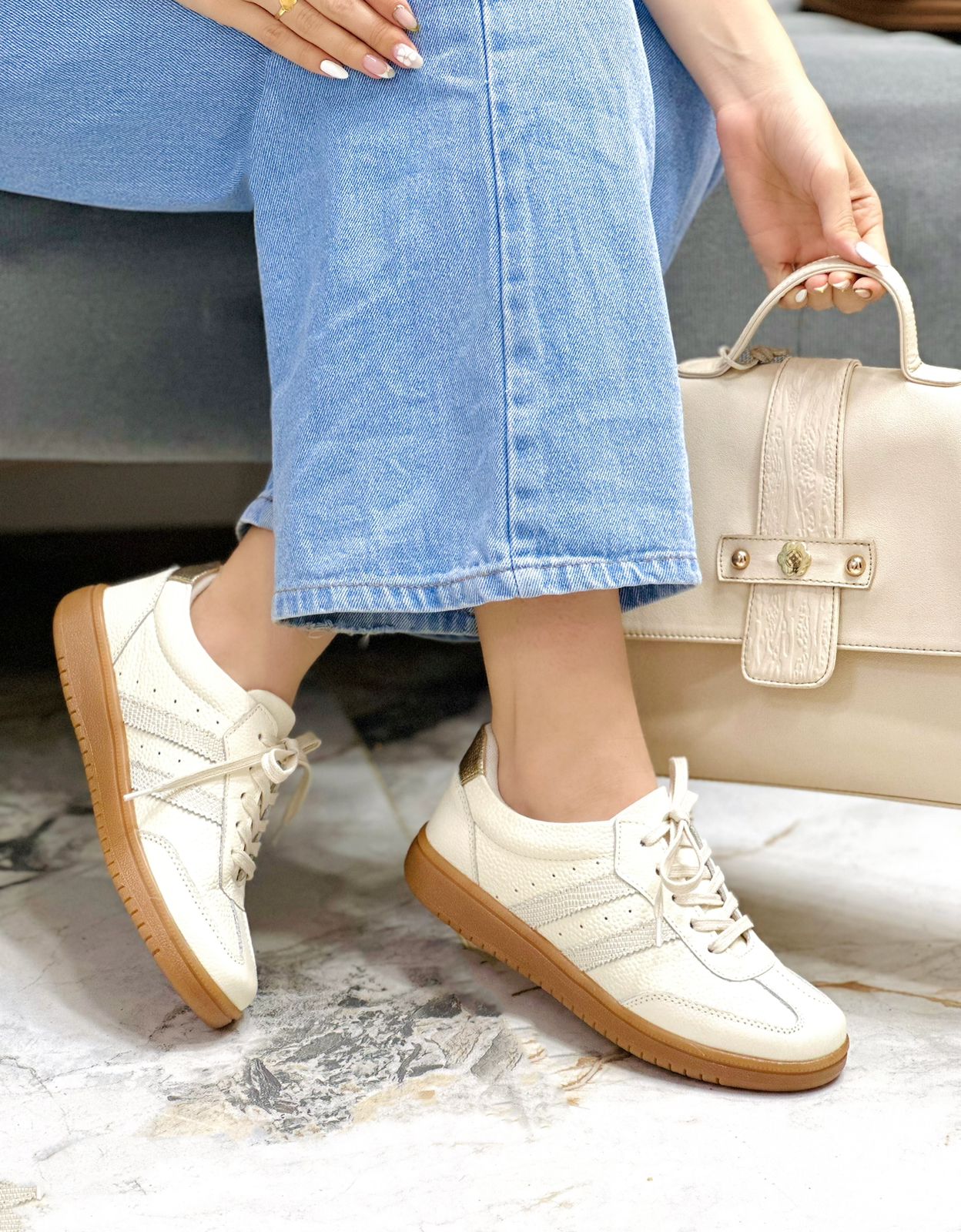 Los tenis Amanda en cuero color Talco combinan elegancia y comodidad. Su suela bajita en tono caramelo aporta un toque moderno y versátil, ideal para cualquier ocasión. Fabricados en cuero de alta calidad, son perfectos para acompañarte con estilo todos los días.