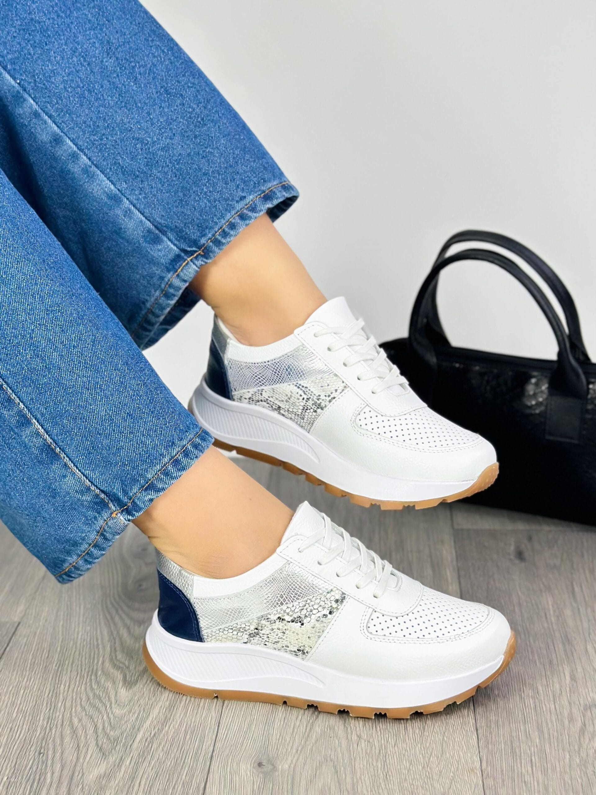 Tenis Aurora Blanco x Plateado con Azul