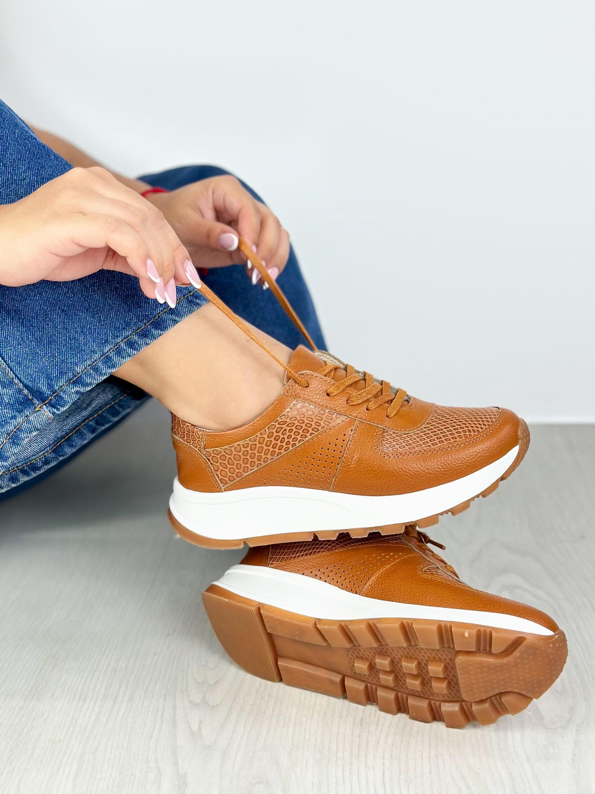 Tenis Crown Miel Perforado con detalles en cuero perforado son el equilibrio perfecto entre comodidad y estilo. Su diseño  en color Miel, añadiendo un toque audaz que destaca en cualquier look. Además, estos tenis están equipados con un abullonado interior que proporciona una mayor comodidad en cada paso, convirtiéndolos en el aliado ideal para el uso diario. Crown redefine la moda casual con un estilo único y un confort excepcional.