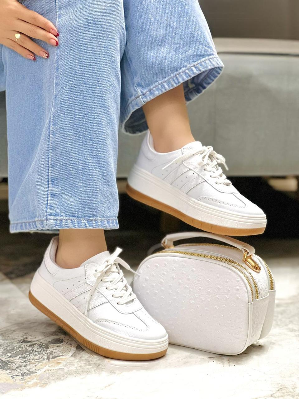 Los tenis Dalia Blanco están elaborados en cuero de muy buena calidad, con un diseño limpio y moderno en color blanco. Cuentan con detalles perforados que aportan frescura, agujetas al tono y suela cómoda con base en color miel que brinda estabilidad y estilo. Son ideales para el uso diario, combinando elegancia, confort y versatilidad.