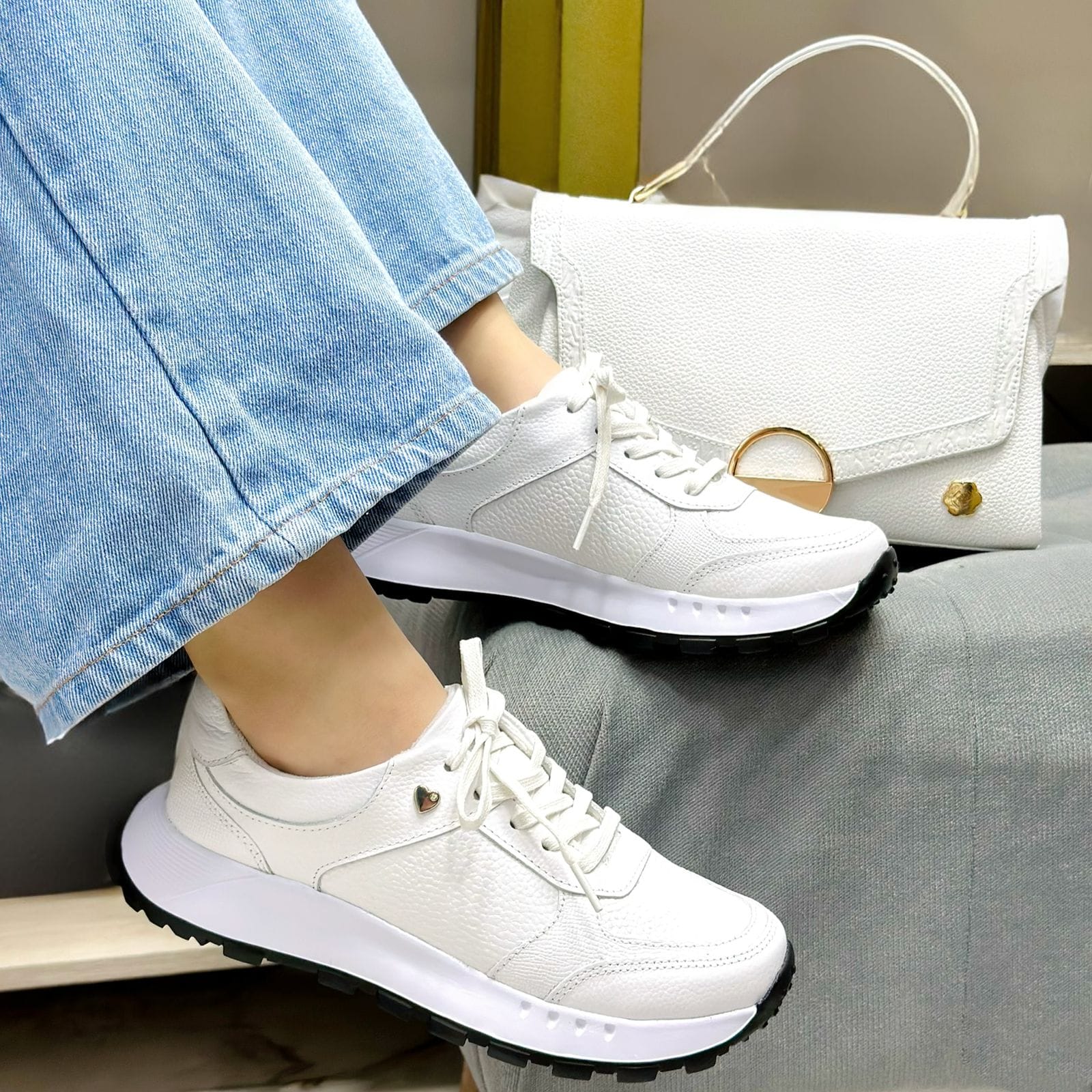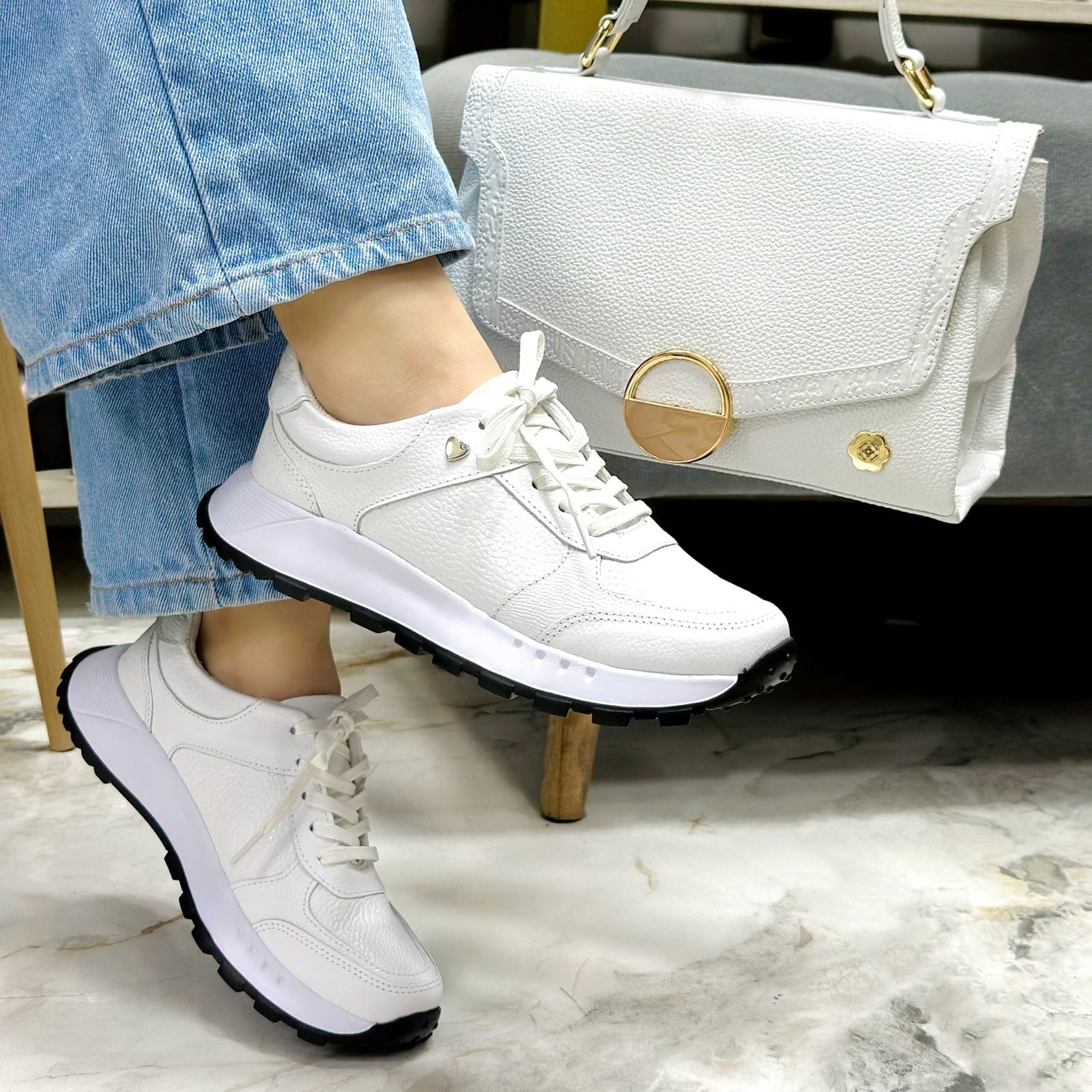 Los tenis Damaris están fabricados en cuero de alta calidad, combinando el clásico color blanco realzan su elegancia y estilo. Su diseño moderno y versátil se complementa con una suela EVA ultraliviana, que garantiza comodidad y ligereza en cada paso. Un calzado exclusivo que fusiona moda, confort y durabilidad, ideal para lucir en cualquier ocasión y darle un toque sofisticado a tus outfits. Perfectos para quienes buscan un diseño premium, resistente y con detalles únicos