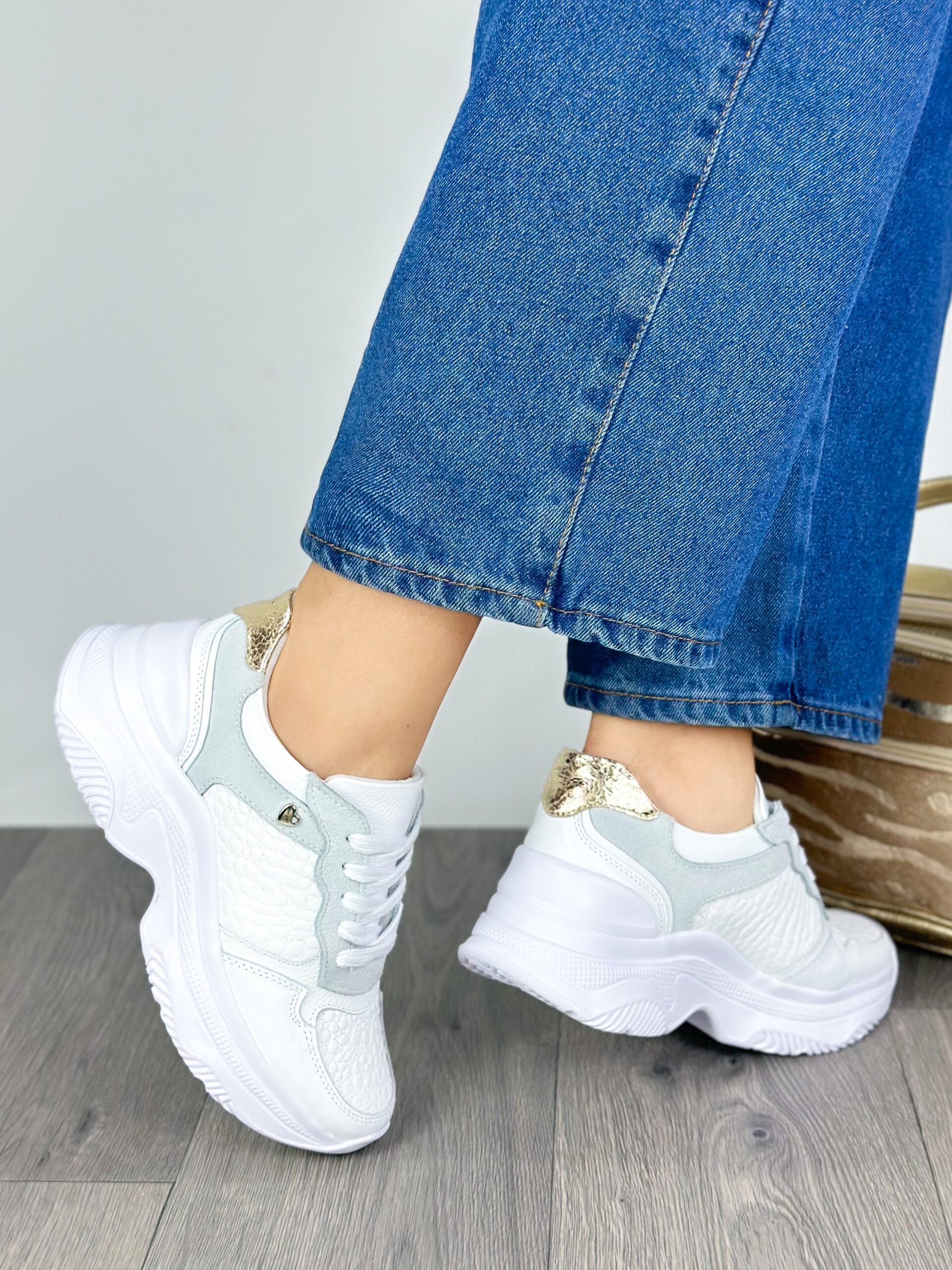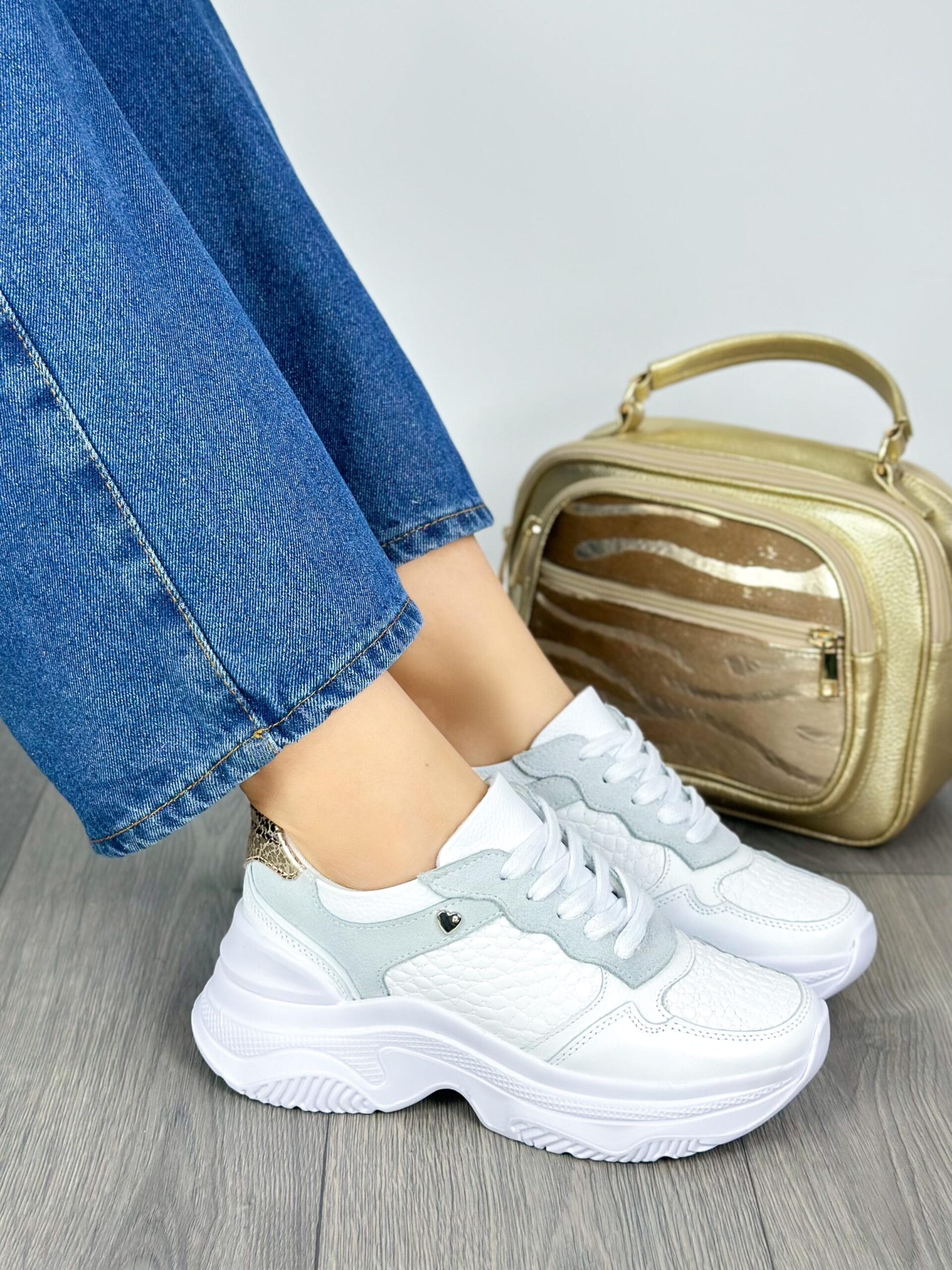 Los tenis Dolce Blanco x Carnaza son la elección perfecta para quienes buscan estilo, comodidad y sofisticación. Fabricados en cuero de alta calidad, su diseño destaca por el color blanco clásico, combinado con paneles laterales en carnaza gris claro que aportan un toque moderno y refinado. La parte trasera cuenta con un detalle dorado sutil que añade un aire de elegancia única. En su interior, estos tenis cuentan con un abullonado en material sintético, diseñado para brindar una sensación de comodidad superior en cada paso. Ideales para combinar con cualquier outfit, desde looks casuales hasta estilos más formales, estos tenis son la opción versátil y moderna que no puede faltar en tu colección.
