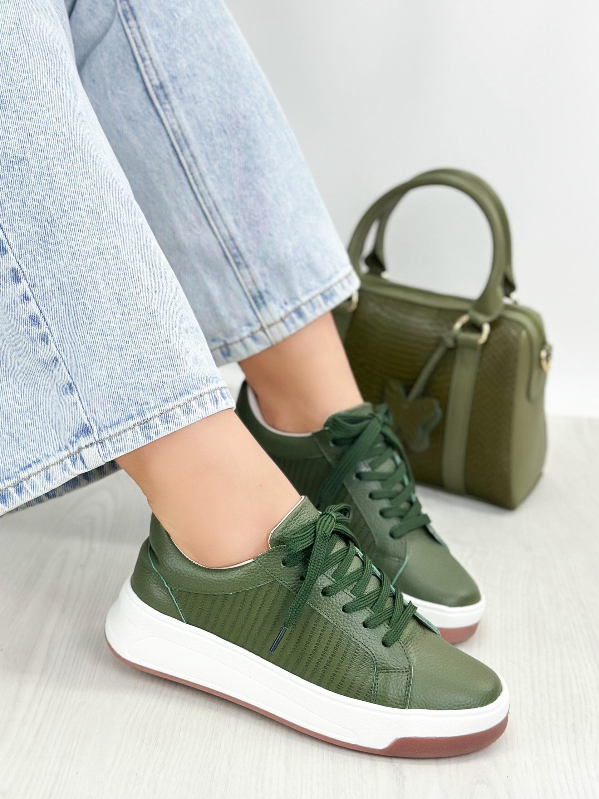 Los tenis Evelyn en color Verde Militar son el equilibrio perfecto entre moda y comodidad. Su diseño moderno, combinado con un tono Verde en tendencia, los convierte en un complemento ideal para cualquier look actual. Están fabricados en cuero de alta calidad, lo que garantiza durabilidad y un acabado elegante. Además, su interior cuenta con un abullonado que brinda una sensación de suavidad y confort durante todo el día. Ideales para quienes buscan estilo sin sacrificar comodidad.
