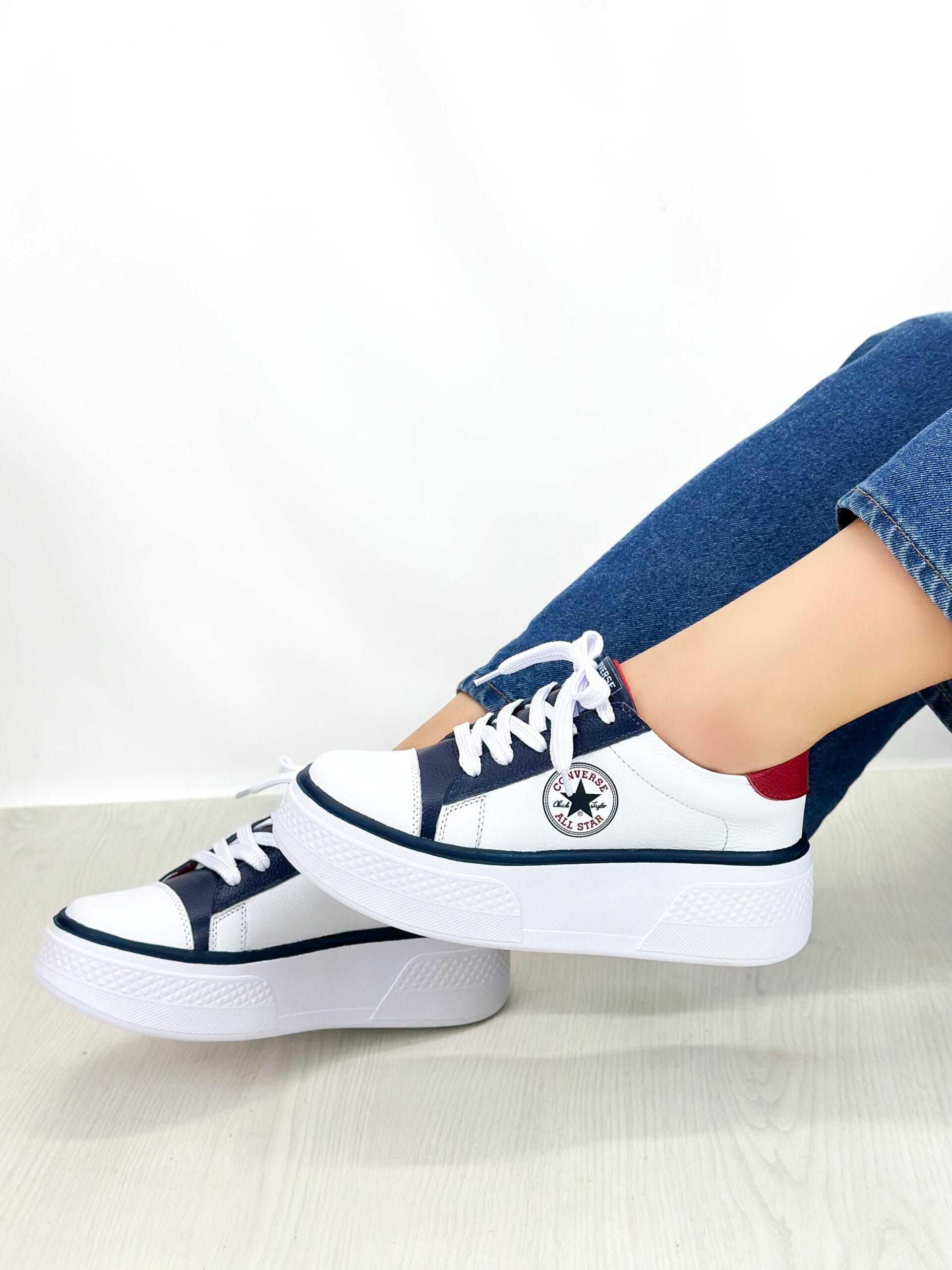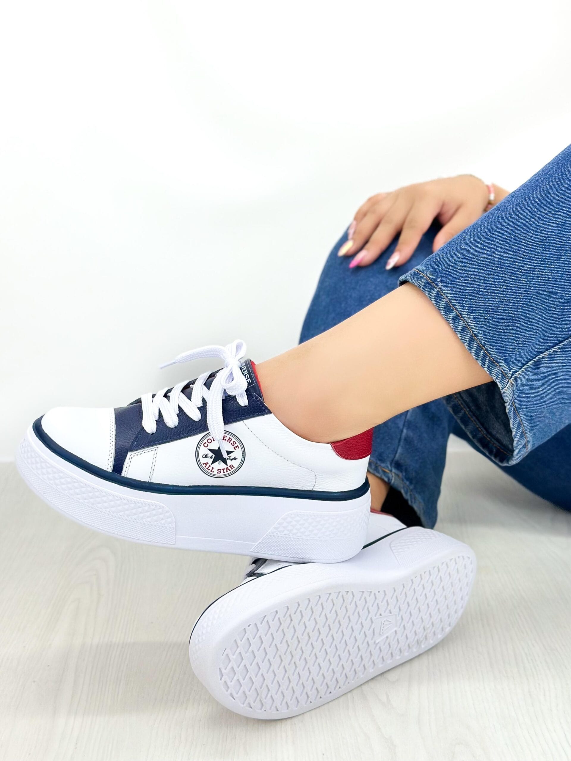 Los tenis Glossy en color Blanco con detalles en Azul y Rojo ofrecen una combinación perfecta de elegancia y estilo urbano. Fabricados en cuero de alta calidad, aporta calidez y carácter al diseño. Un sutil detalle en Azul alrededor de la suela añade un toque moderno y sofisticado. Este calzado no solo resalta por su estética, sino también por su comodidad y versatilidad, convirtiéndolo en la opción ideal para el uso diario o para complementar un look casual con personalidad