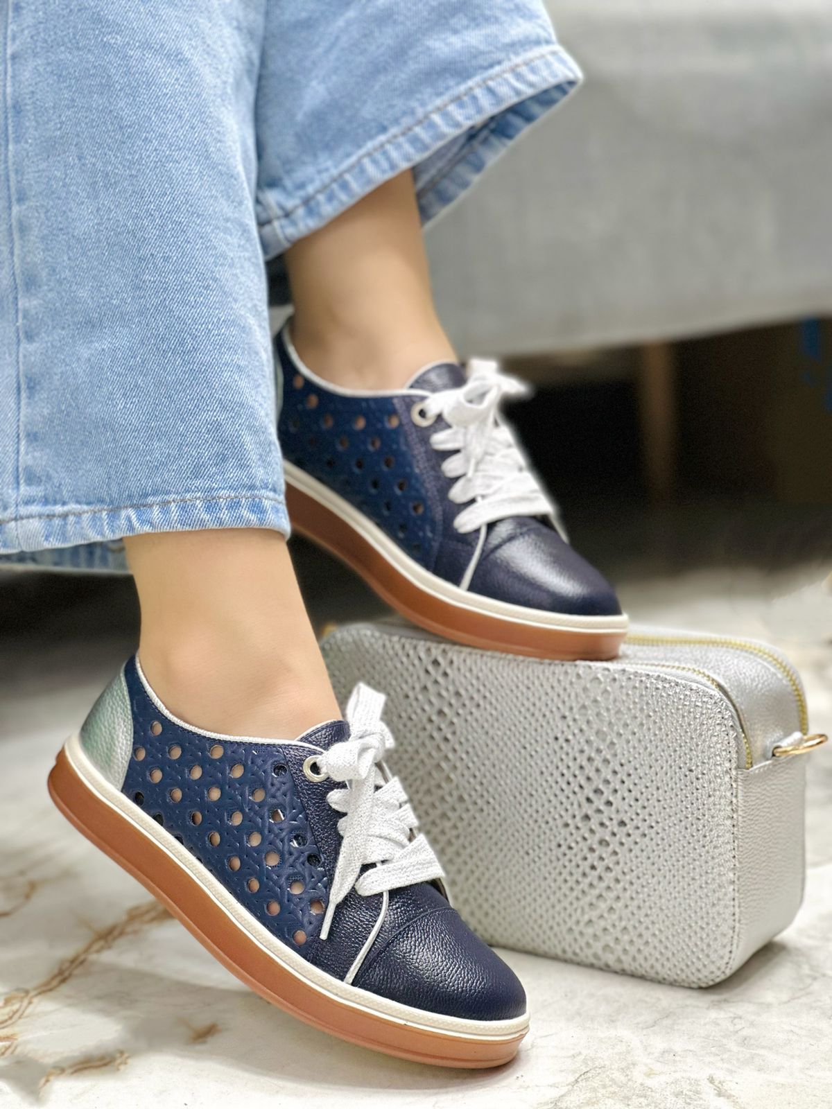 Los tenis Hinata en color Azul combinado con plata combinan estilo moderno y practicidad. Su diseño en cuero perforado aporta frescura y un look versátil, mientras que el abullonado en material sintético brinda suavidad y soporte extra. Además, cuentan con plantilla confort que garantiza bienestar durante todo el día. Su suela baja los convierte en la opción ideal para uso diario, ofreciendo comodidad y un toque de elegancia casual en cada paso.