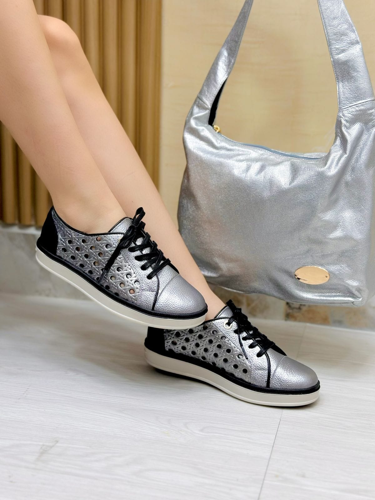 Su diseño minimalista en tono caño fusil combinado con negro resalta por sus detalles cuidadosamente trabajados, como el acabado texturizado y los cordones en contraste que aportan un aire sofisticado pero versátil. Ideales para uso diario, estos tenis brindan confort gracias a su interior acolchado y suela ligera, permitiendo una pisada firme y cómoda durante todo el día.