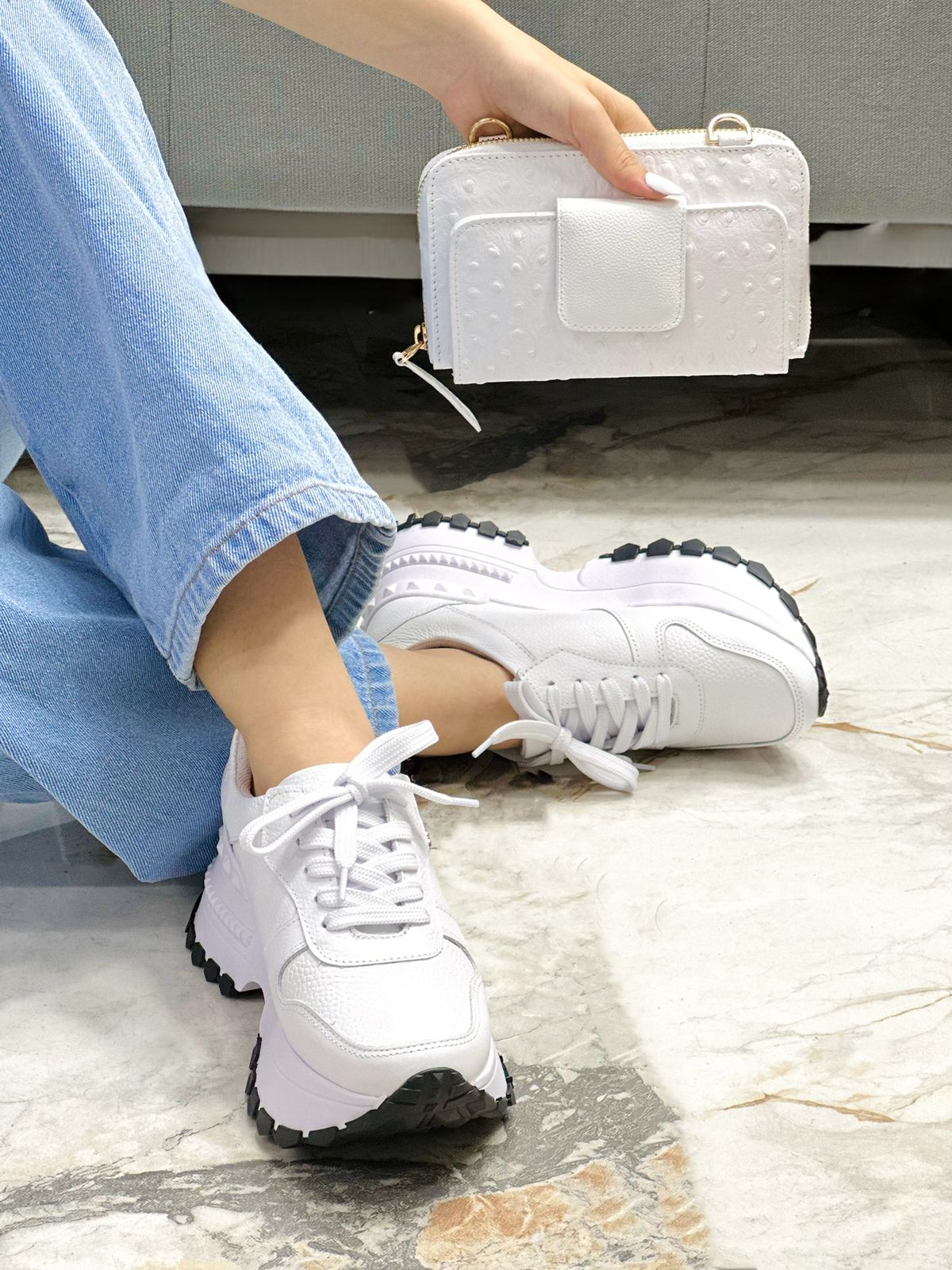Los tenis Kathar en color Blanco son una fusión perfecta de estilo, comodidad y elegancia. Elaborados en cuero de alta calidad, destacan por su textura suave y su acabado impecable. Aporta un toque sofisticado y moderno que los convierte en el complemento ideal para cualquier ocasión.