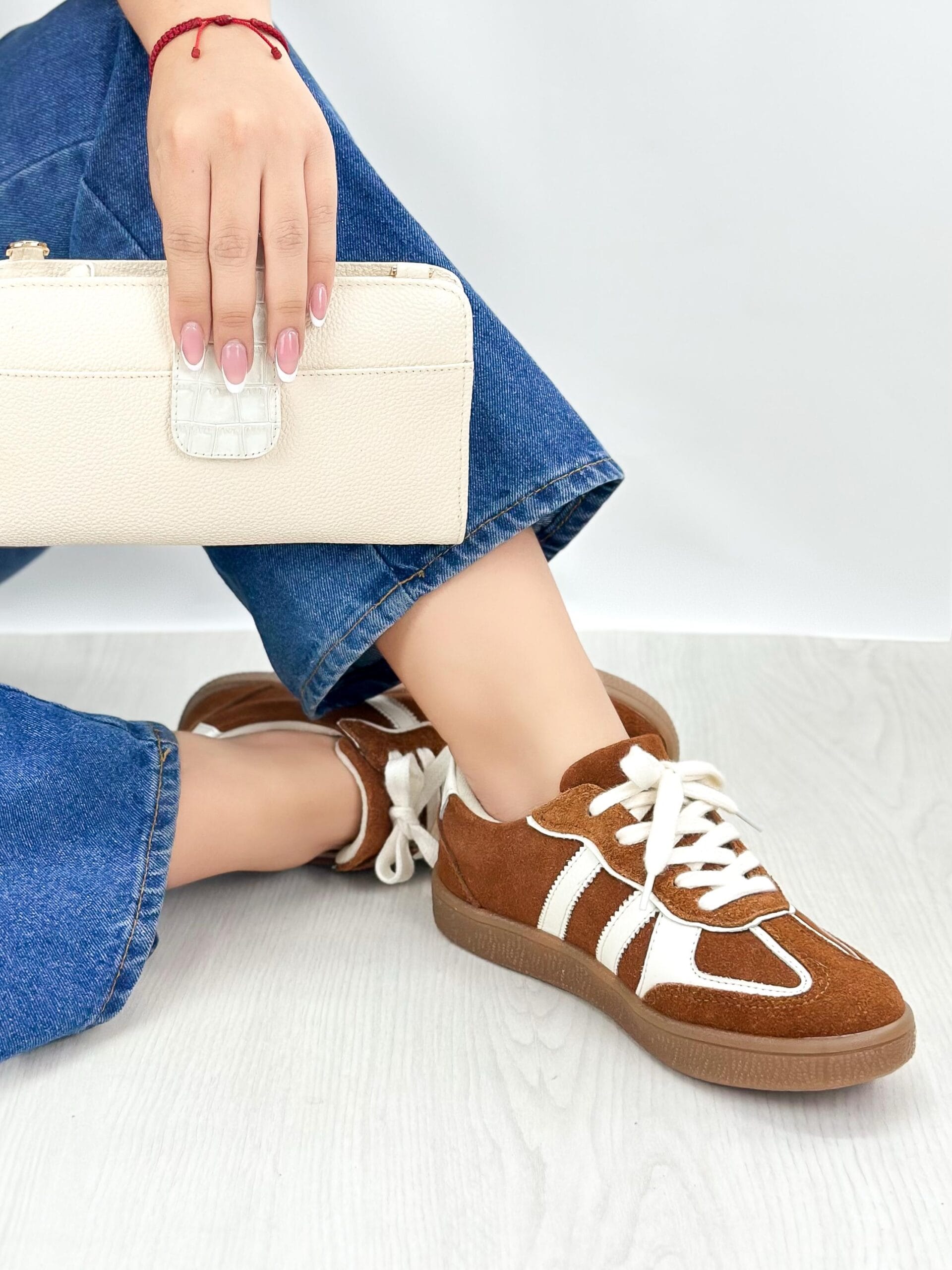 Descubre los tenis Kitzal en color Miel, elaborados en cuero carnaza de alta calidad con un elegante detalle en color talco que realza su diseño. Su suela baja en tono café no solo aporta un contraste original, sino que también brinda comodidad para el uso diario. Un calzado versátil, diferente y con estilo propio.