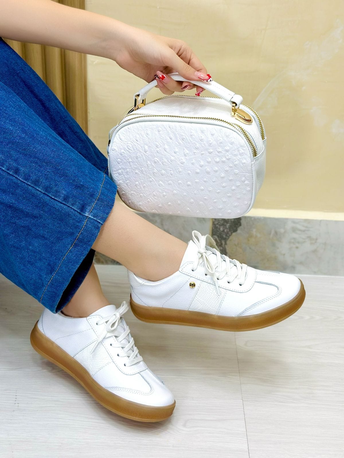 Tenis Benito en cuero color Blanco, el equilibrio perfecto entre sofisticación y comodidad. Su acabado metalizado aporta un brillo sutil que eleva cualquier look, convirtiéndolos en el complemento ideal para destacar con estilo en el día a día.