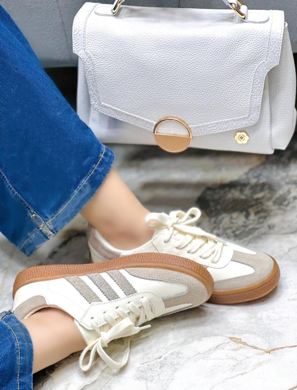 Los tenis Micaela en color Talco combinan estilo con sus detalles en color Carnaza , practicidad y comodidad en un solo diseño. Su diseño facilitando un ajuste rápido y seguro, ideal para el ritmo acelerado del día a día. Están elaborados en cuero de alta calidad, lo que garantiza durabilidad y un look sofisticado. En su interior, cuentan con un suave abullonado  que brinda una sensación de confort superior en cada paso, haciéndolos perfectos para el uso diario sin sacrificar estilo ni bienestar.