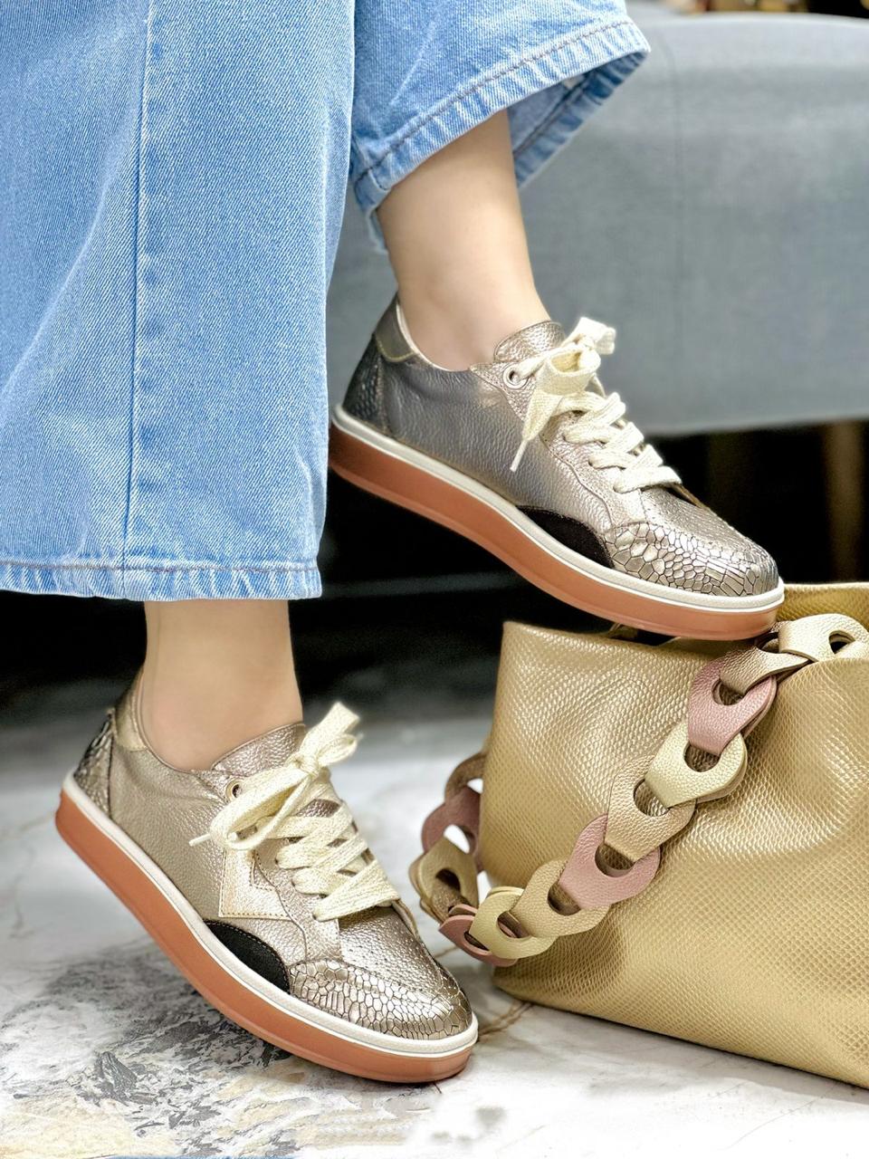 Tenis Nix en color luna con un diseño moderno y sofisticado, ideal para quienes buscan destacar con estilo. Presenta detalles en folia tanto en la parte delantera como trasera, que aportan un brillo sutil y elegante. A los costados, un toque de dorado añade un contraste delicado y atractivo. En la parte baja, incorpora acentos en carnaza que le dan textura y un aire casual. Completado con un cordón decorativo de diseño refinado, este tenis combina comodidad, originalidad y un look versátil perfecto para el día a día.