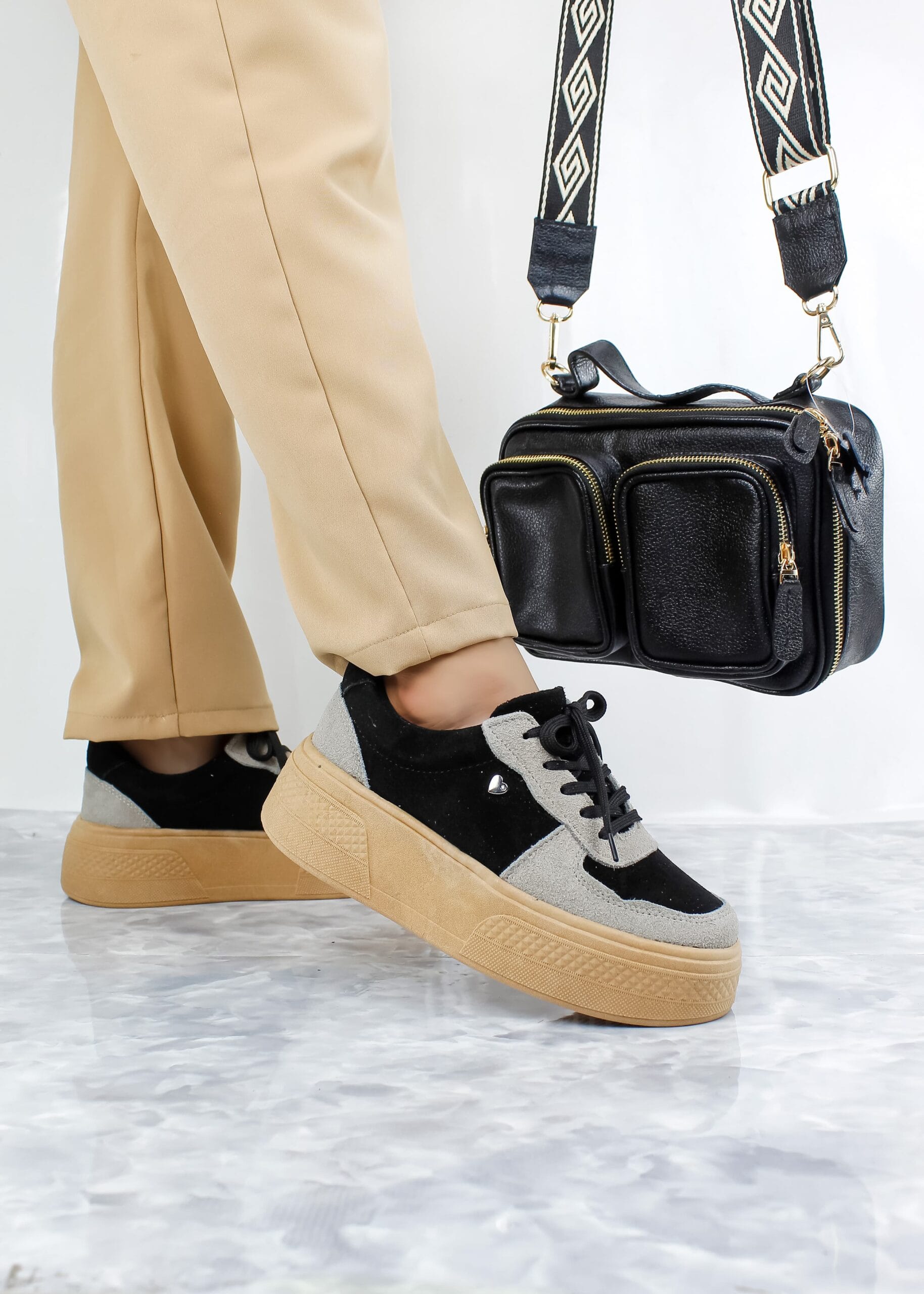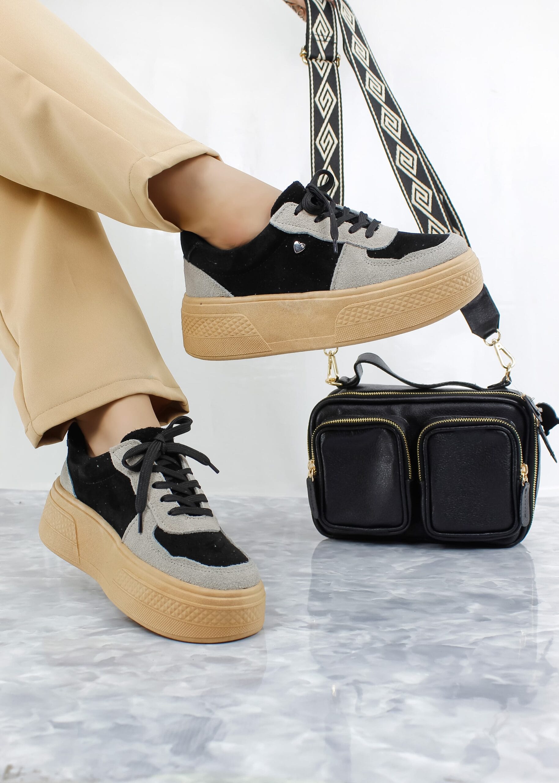 Los tenis Noah son la combinación perfecta entre elegancia y diseño contemporáneo. Elaborados en fino cuero color Negro, se realzan con delicados detalles en carnaza de color gris claro en la parte de adelante, añade textura y un toque artesanal que distingue. Su diseño versátil y cuidadosamente pensado los convierte en el complemento ideal para looks casuales con un giro refinado.