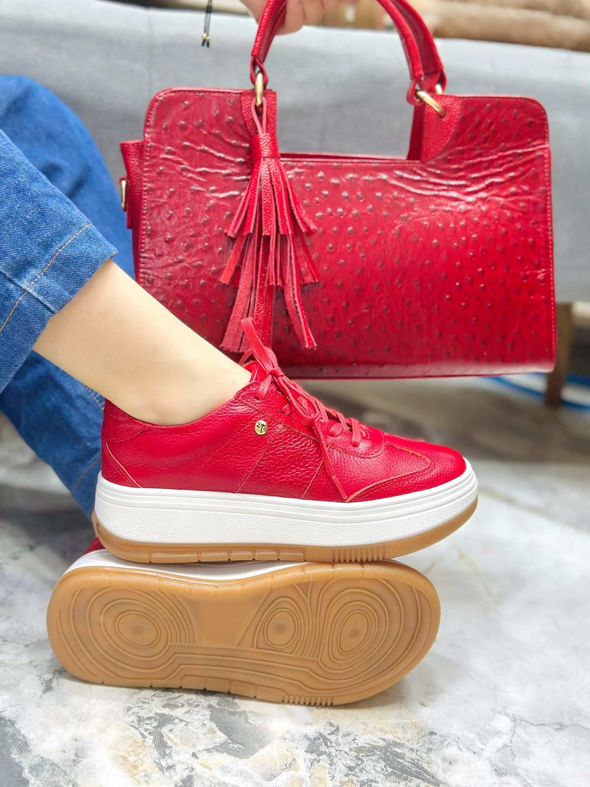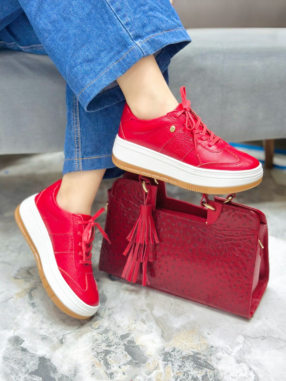 Eleva tu estilo con estos elegantes tenis de cuero en color rojo intenso. Su diseño moderno combina perfectamente comodidad y sofisticación, convirtiéndolos en el complemento ideal para cualquier look casual o urbano.
