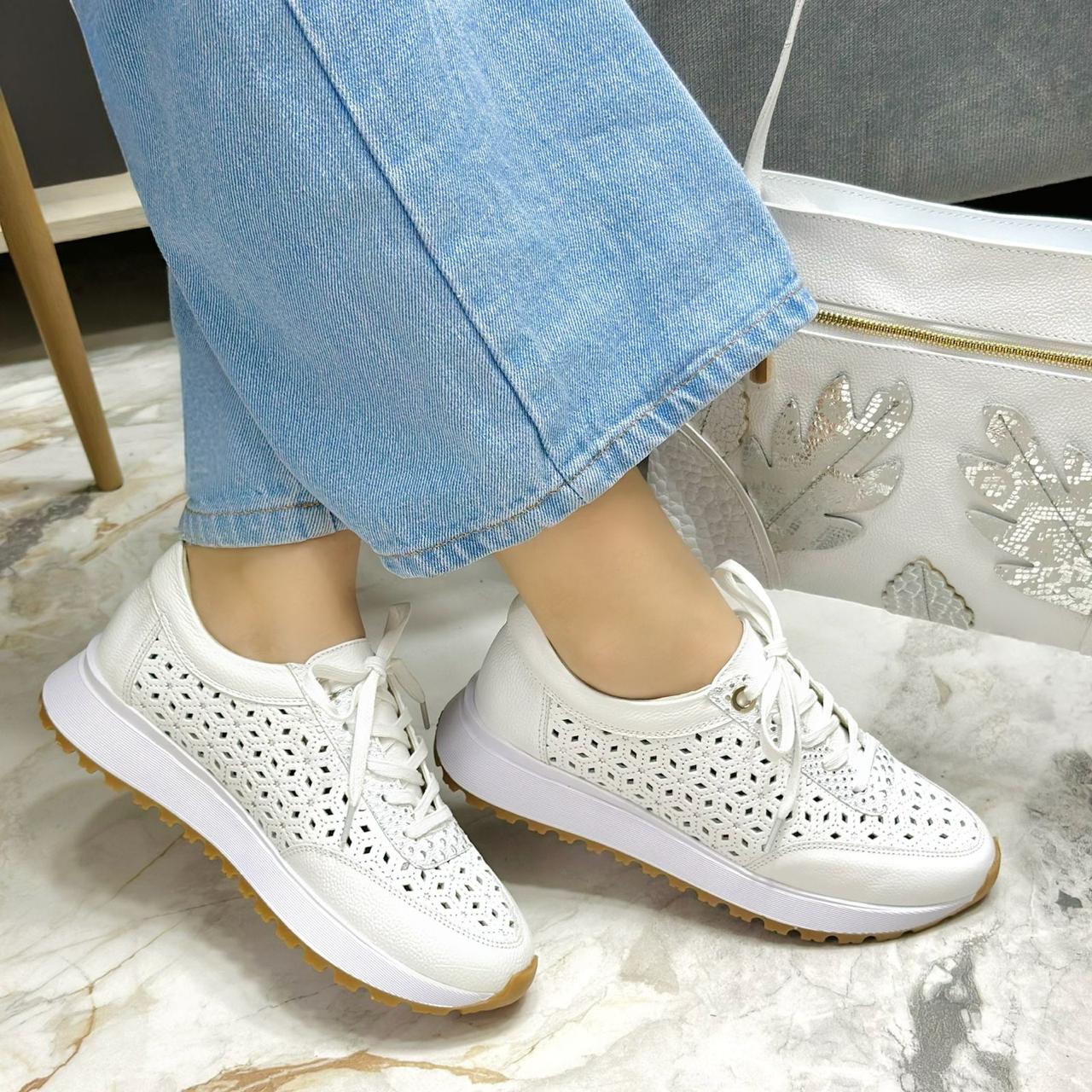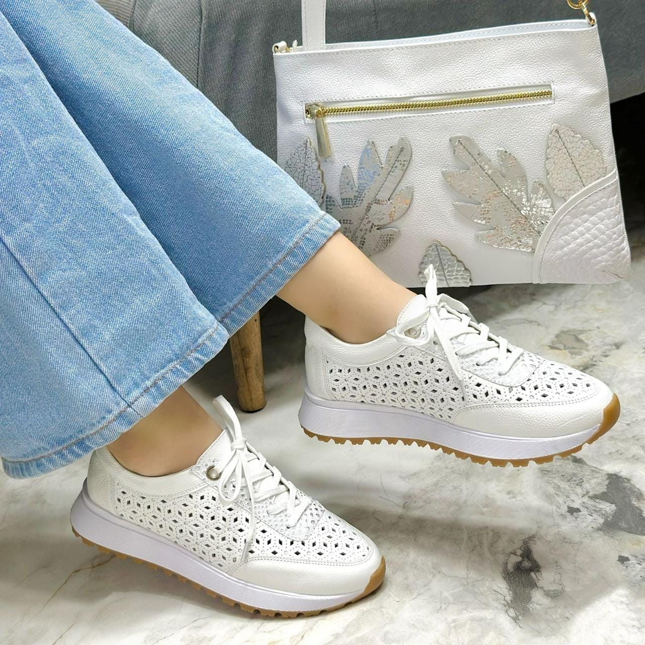 Los tenis Rachel destacan por su diseño moderno, femenino y lleno de estilo. Elaborados en cuero genuino, presentan un diseño perforado que aporta frescura y ligereza, ideal para el día a día. Su cordonera en cuero con pintas plateadas añade un toque elegante y sofisticado, mientras que su suela ligera garantiza comodidad en cada paso. Perfectos para quienes buscan un calzado versátil que combine moda, confort y un acabado artesanal de alta calidad.