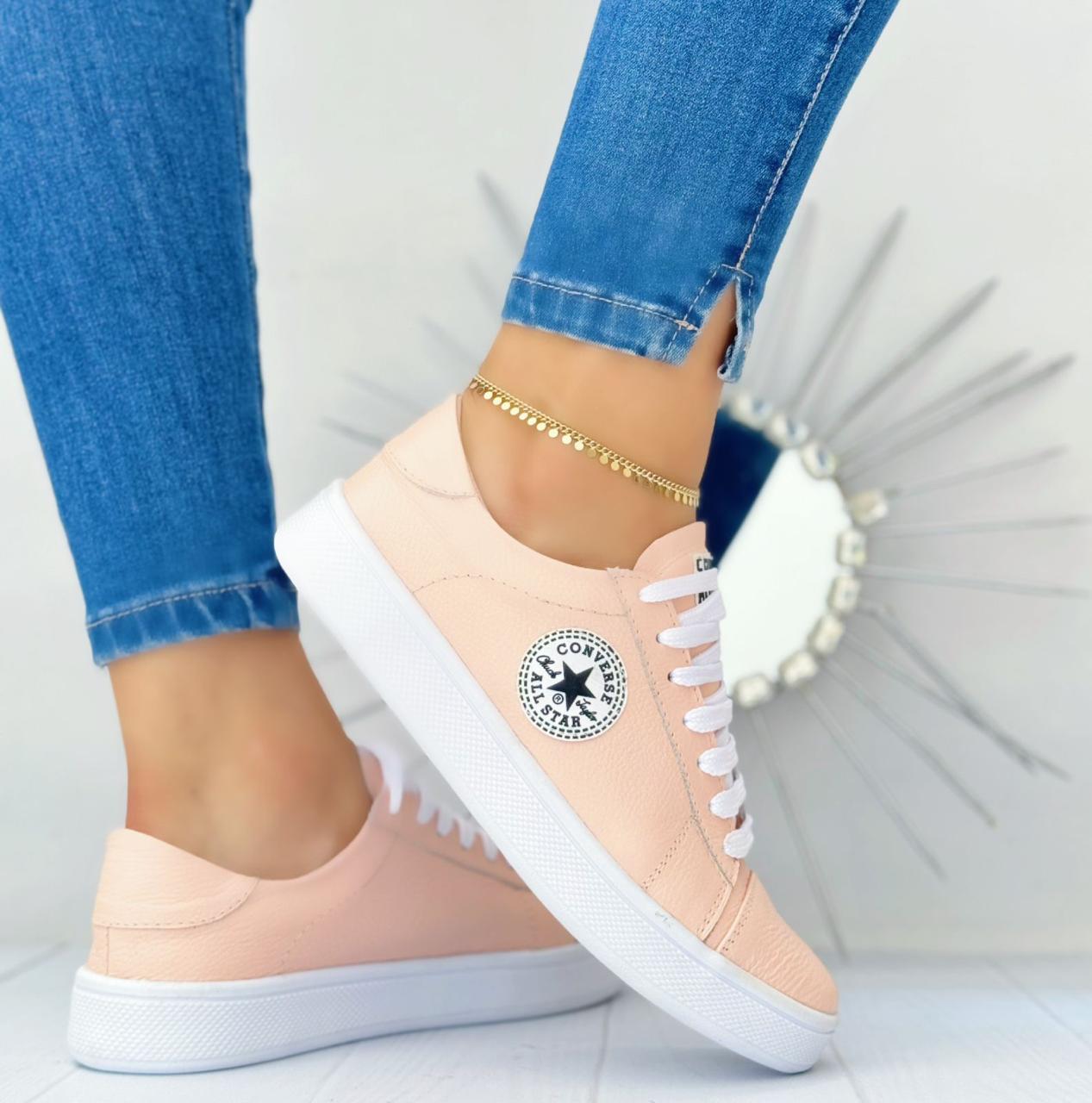 Tenis en cuero liso 100% color nude, de diseño minimalista y elegante. Su cordón blanco contrasta sutilmente, aportando un toque fresco y moderno. La suela blanca de perfil limpio realza su estilo contemporáneo, brindando comodidad y versatilidad para combinar con cualquier look. Perfectos para un outfit neutro y sofisticado.
