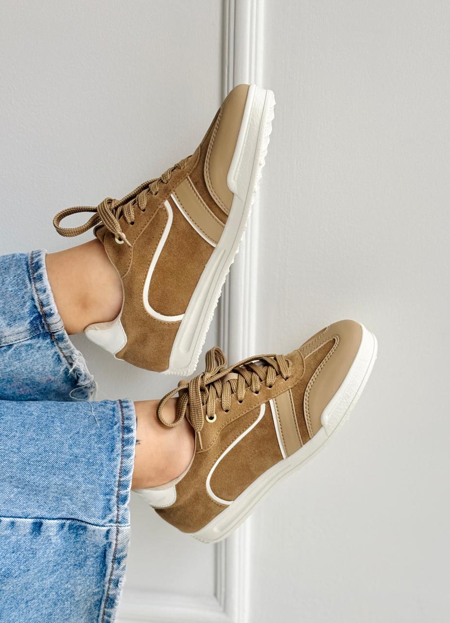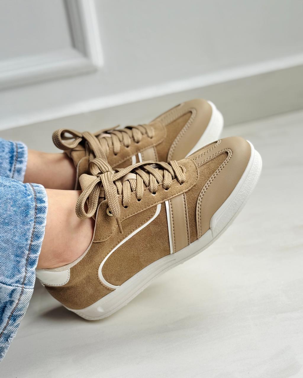 Tenis urbano en color Capuchino con suela tipo caramelo, ideal para quienes buscan estilo y comodidad en su día a día. Confeccionado en material sintético de alta calidad, combina diferentes texturas que le aportan un diseño moderno y dinámico. Su suela de tono caramelo no solo brinda un contraste atractivo. Perfectos para looks casuales, deportivos o urbanos.