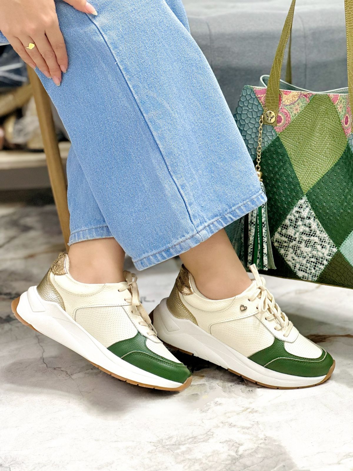 Tenis Samantha Talco Verde Dorado