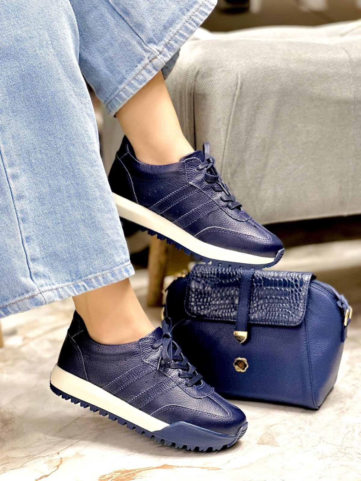 Descubre los tenis Selene en color totalmente Azul, un diseño versátil y moderno que une estilo y comodidad. Su confección en materiales de alta calidad y su suela con excelente tracción los convierten en el aliado perfecto para tus looks casuales y urbanos.