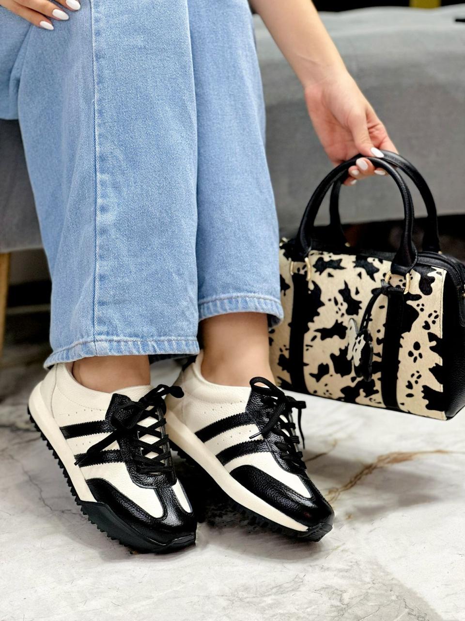 Descubre los tenis Selene Talco con Rayas en color Negro, elaborados en cuero de alta calidad. Su diseño sofisticado y su suela distintiva aportan un estilo único y moderno. El interior con abullonado en cuero sintético ofrece una comodidad superior, ideal para el día a día. La combinación de tonos neutros los convierte en el complemento perfecto para cualquier look.