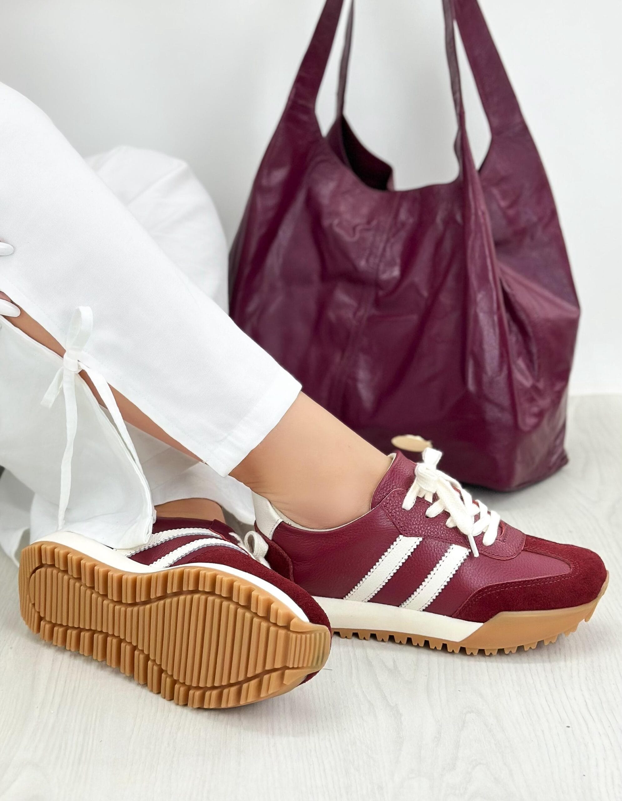 Descubre los tenis Selene en color Vinotinto x Talco, elaborados en cuero carnaza de alta calidad. Su diseño sofisticado y su suela distintiva aportan un estilo único y moderno. El interior con abullonado en cuero sintético ofrece una comodidad superior, ideal para el día a día. La combinación de tonos neutros los convierte en el complemento perfecto para cualquier look.