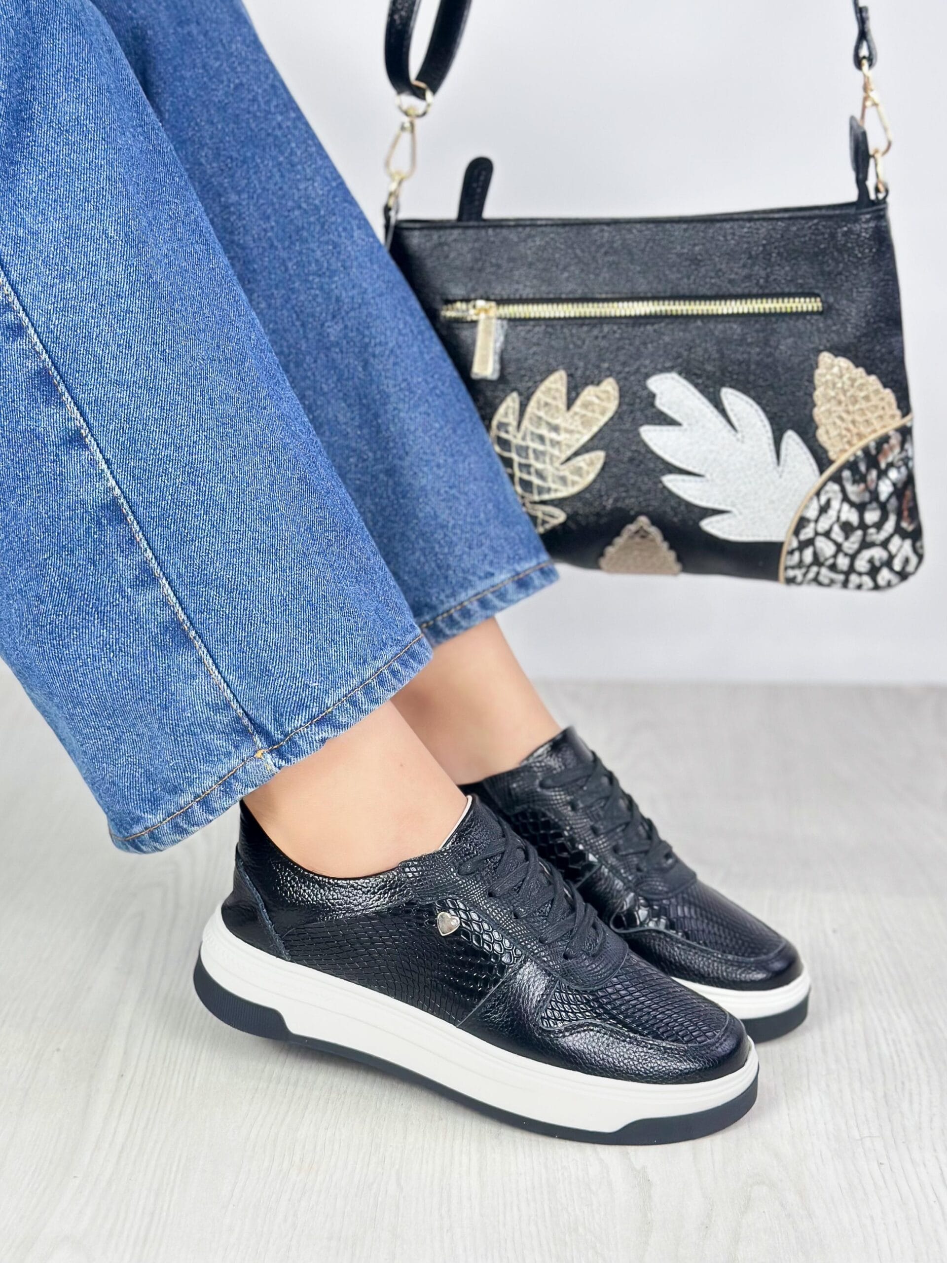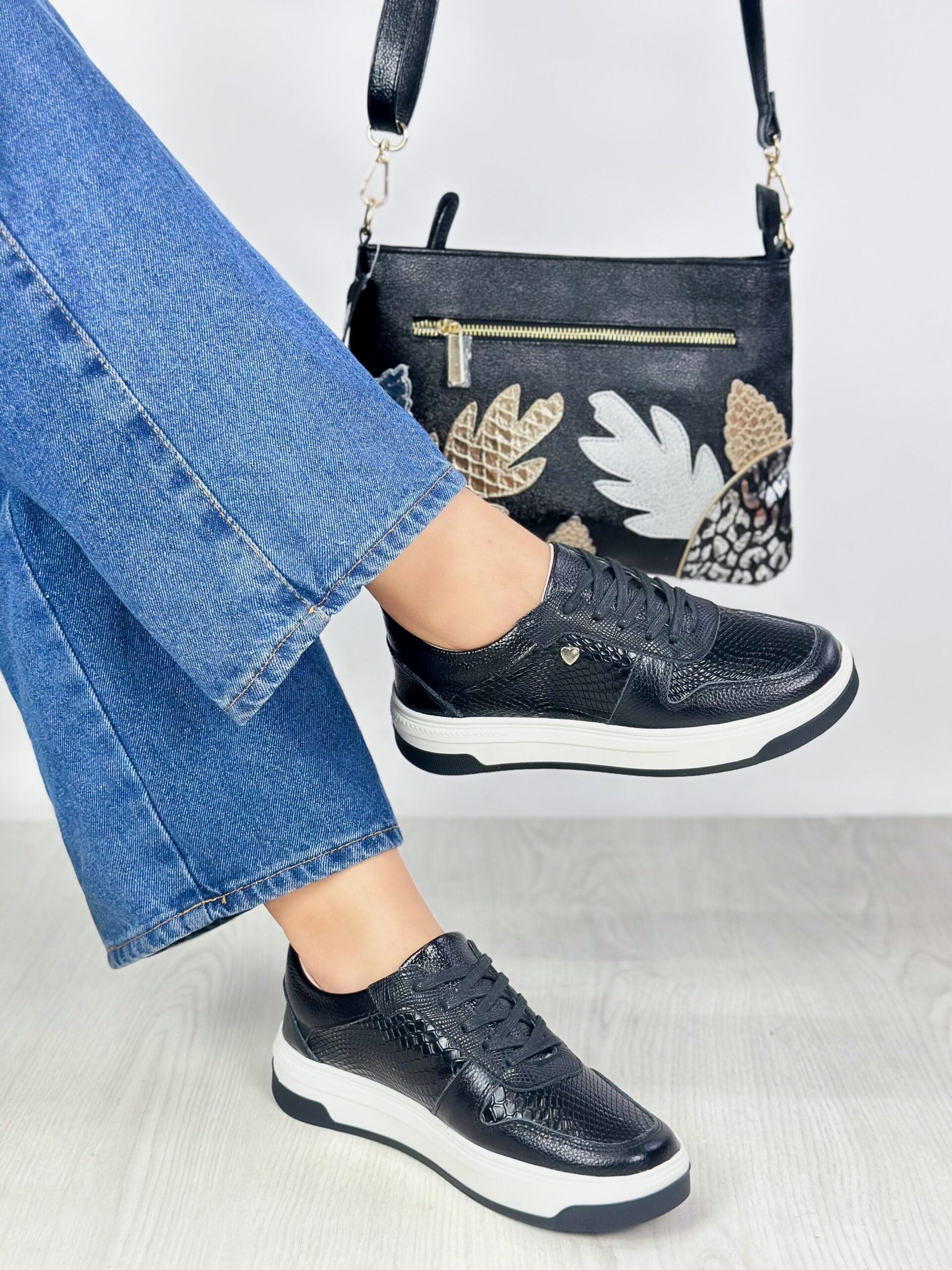 Los tenis Steps Negro combinan estilo y comodidad en un diseño único. Fabricados en cuero gecco de alta calidad, estos tenis cuentan con una plantilla confort y un forro interior en cuero badana que garantiza el máximo bienestar durante todo el día. Su color Negro neutro los convierte en el calzado perfecto para cualquier ocasión, ya sea casual o formal, brindando un toque elegante y sofisticado a tu look. Ideal para quienes buscan un tenis versátil, cómodo y con un diseño atemporal.