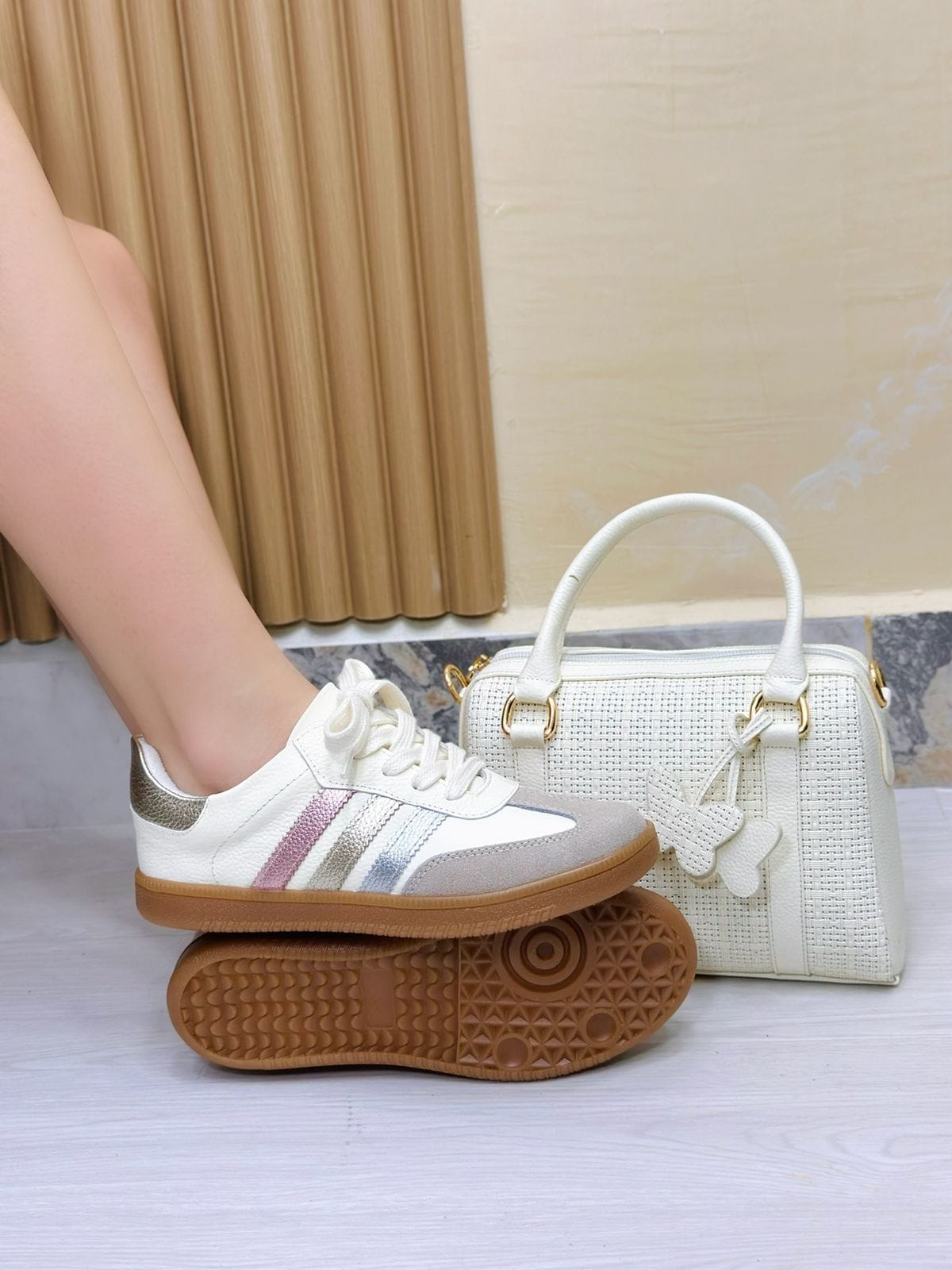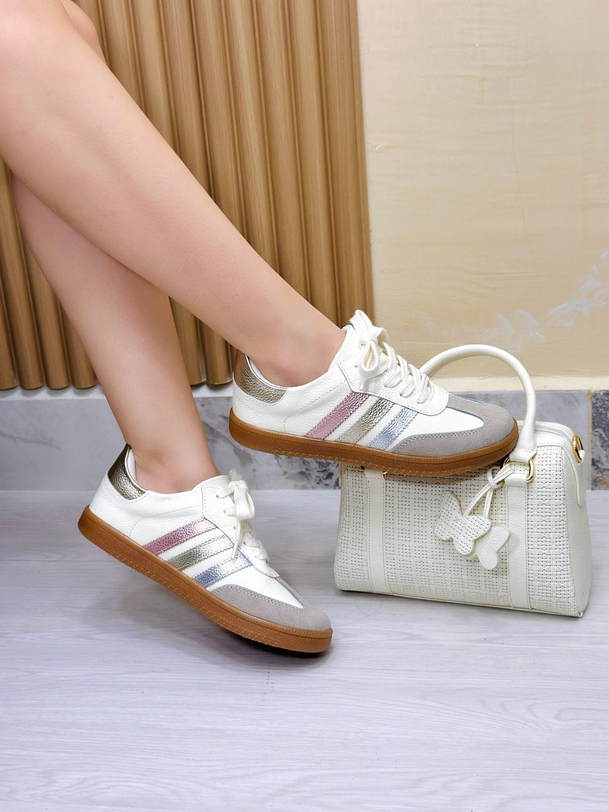 Los tenis Strada en color Talco combinan estilo con sus detalles en color dorado plata y oro rosa, practicidad y comodidad en un solo diseño. Su diseño facilitando un ajuste rápido y seguro, ideal para el ritmo acelerado del día a día. Están elaborados en cuero de alta calidad, lo que garantiza durabilidad y un look sofisticado. En su interior, cuentan con un suave abullonado que brinda una sensación de confort superior en cada paso, haciéndolos perfectos para el uso diario sin sacrificar estilo ni bienestar.