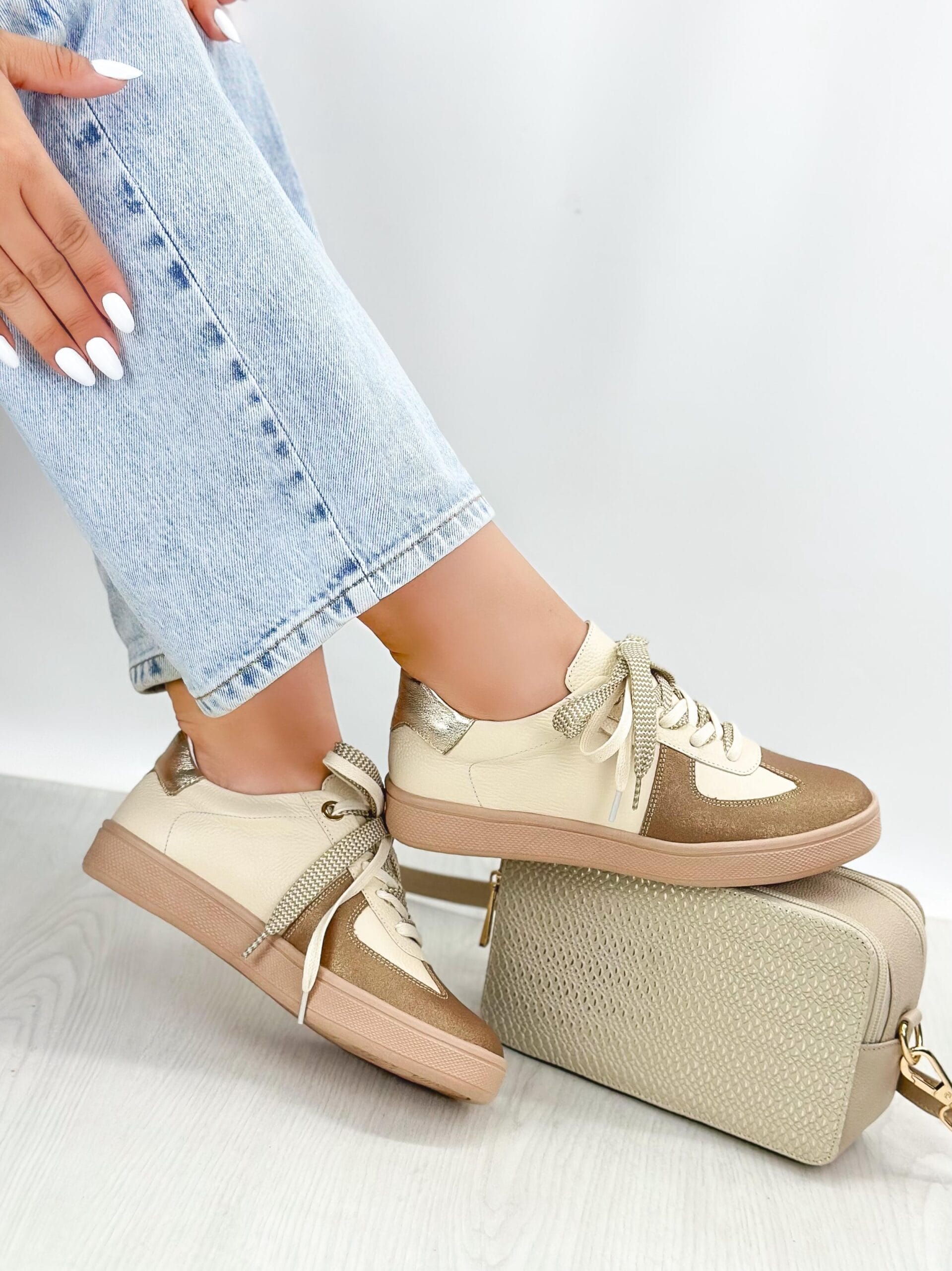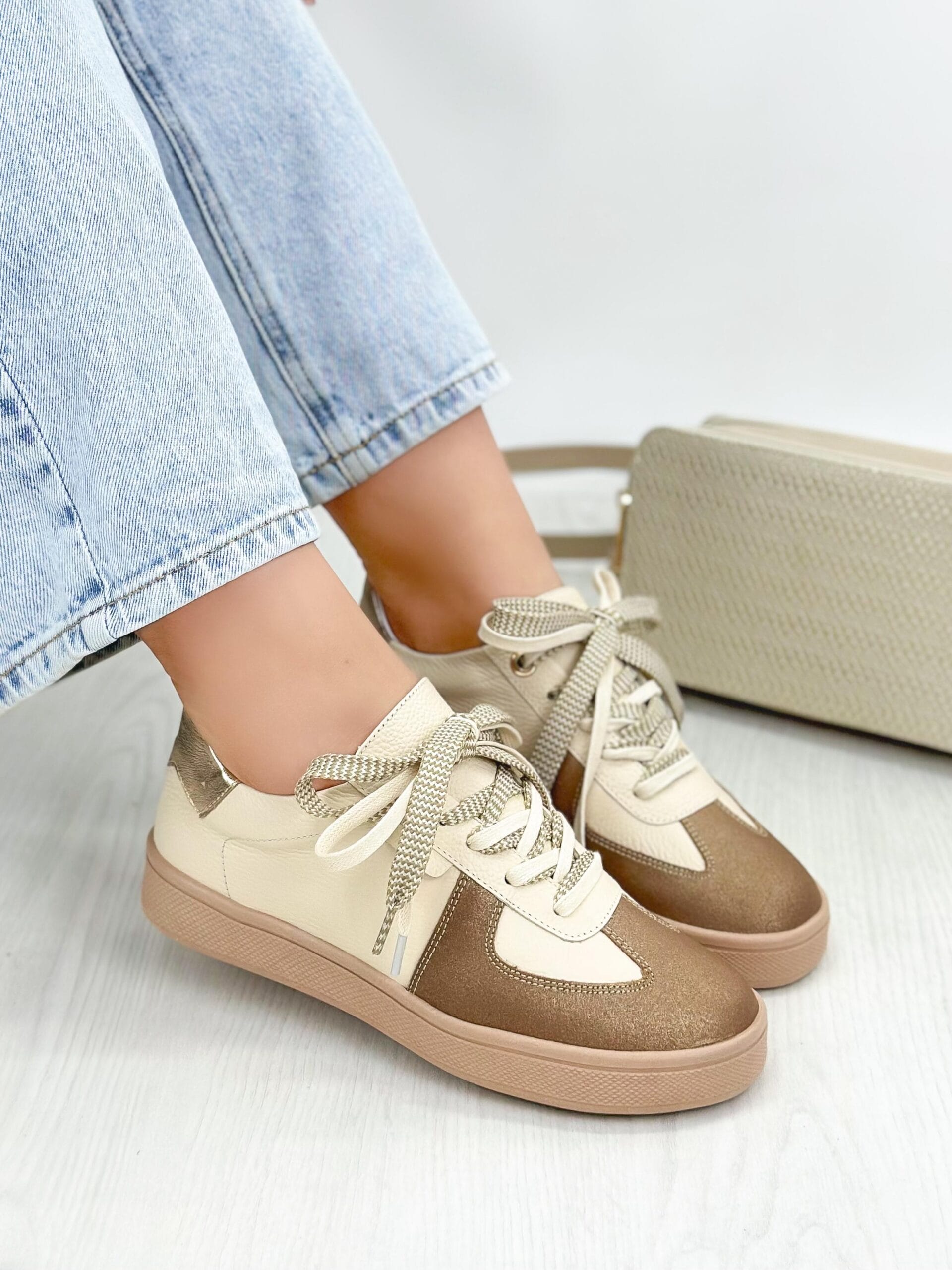 Los tenis Tiara en color Capuchino con detalles en tono Bronce son el equilibrio perfecto entre moda y comodidad. Su diseño los convierte en un complemento ideal para cualquier look actual. Están fabricados en cuero de alta calidad, lo que garantiza durabilidad y un acabado elegante. Además, su interior cuenta con un abullonado que brinda una sensación de suavidad y confort durante todo el día. Ideales para quienes buscan estilo sin sacrificar comodidad.