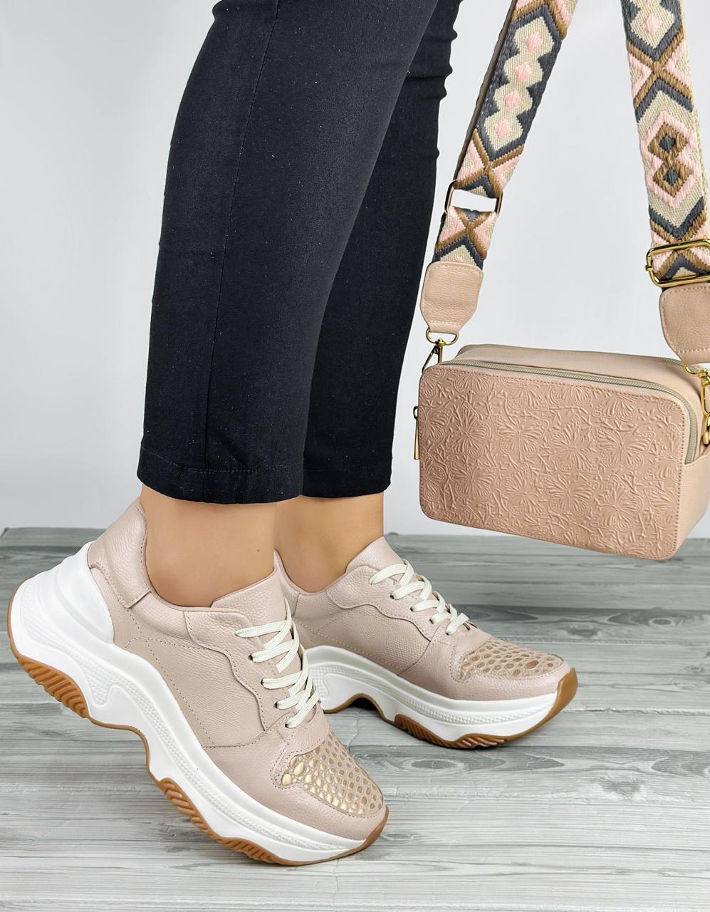 Los Tenis Vicky Taupe son ideales para quienes buscan un diseño moderno y elegante. Fabricados en cuero de alta calidad, su color Taupe se complementa perfectamente con sutiles detalles en cuero a ambos lados, aportando un contraste sofisticado y atemporal. En su interior, cuentan con un abullonado en material sintético que ofrece una comodidad inigualable durante todo el día. Estos tenis combinan estilo y versatilidad, siendo perfectos para llevar con looks casuales o más formales, asegurando siempre una pisada cómoda y con mucho estilo. ¡Un diseño que resalta por su simplicidad y detalles únicos!