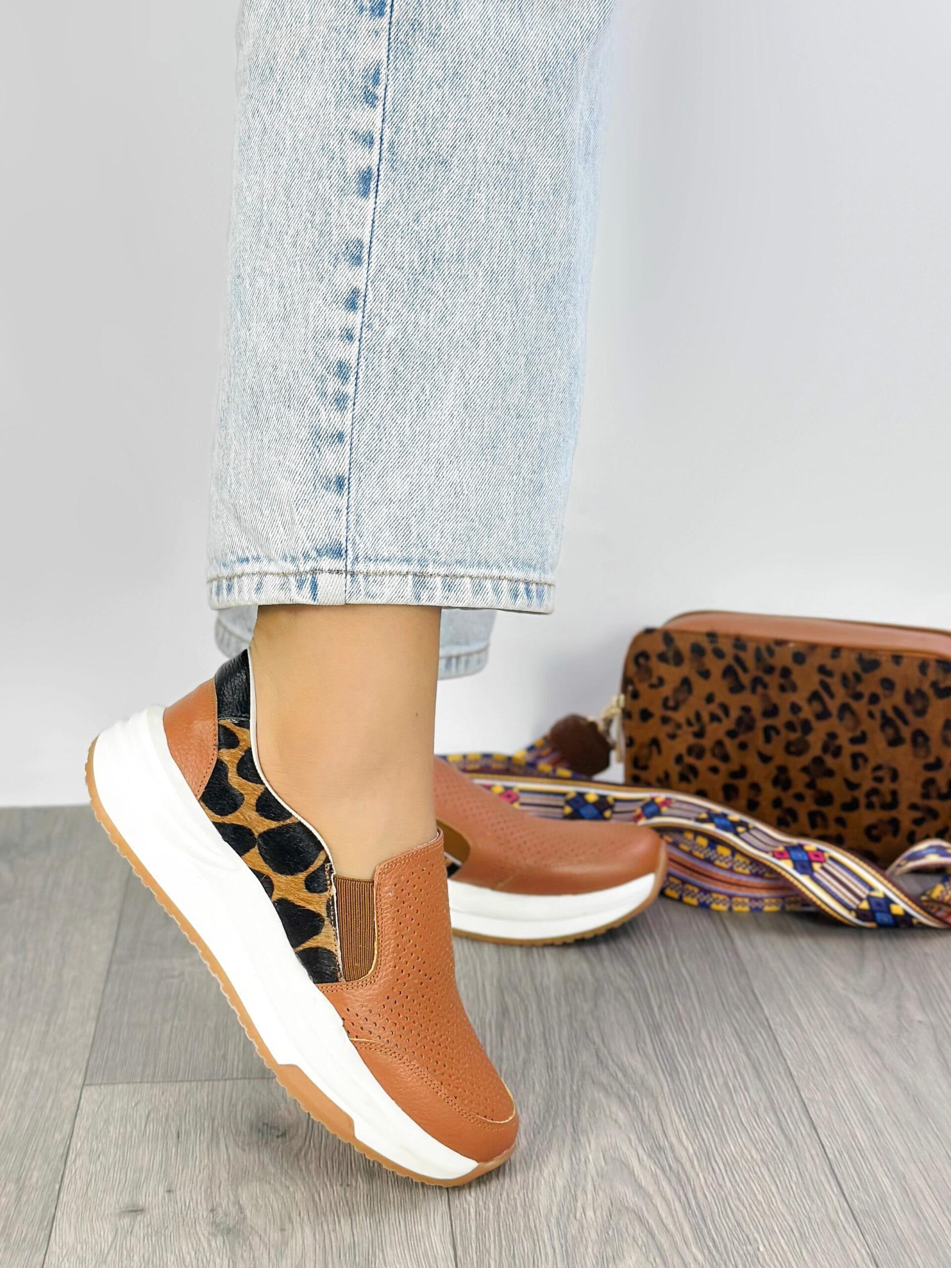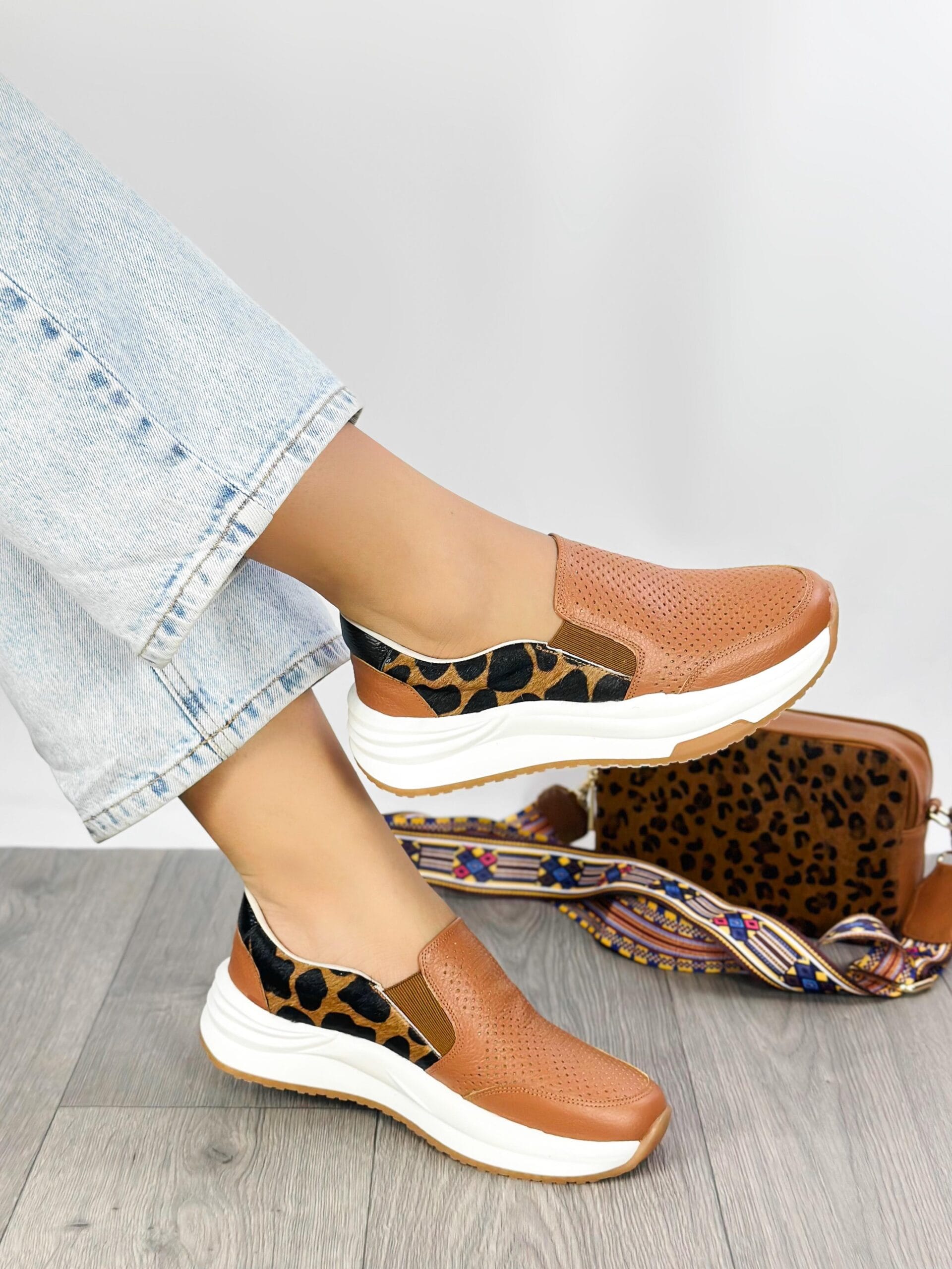 Nuestra exclusiva línea de tenis de cuero Zoé está diseñada con precisión para ofrecerte el máximo confort sin renunciar al estilo. Disponibles en una elegante color Miel combinado con print a los lados, estos tenis están elaborados con cuero de primera calidad y detalles finamente seleccionados que los hacen destacar en cualquier ocasión.